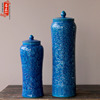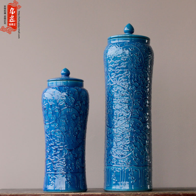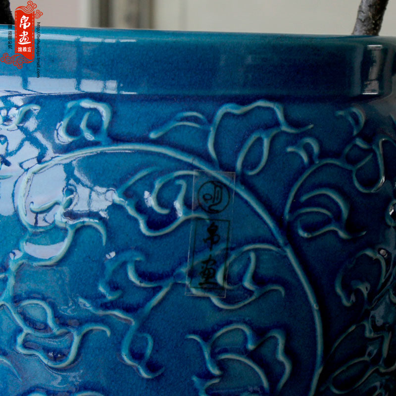 景德镇陶瓷花瓶摆件客厅插花创意现代蓝色浮雕装饰品摆设