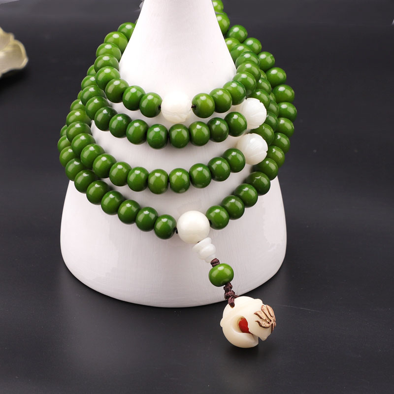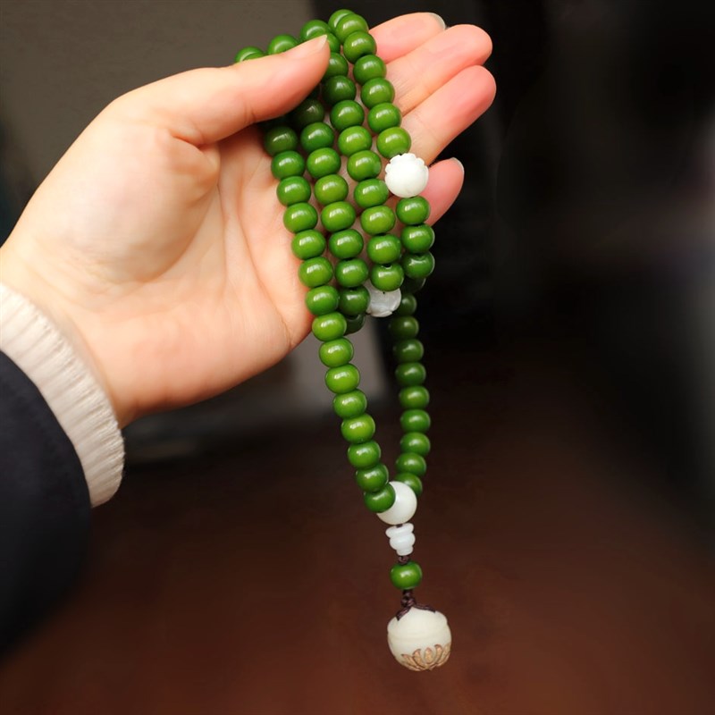 春之绿色 深绿菩提根108颗手串多圈菩提子手链男女通用佛珠项链