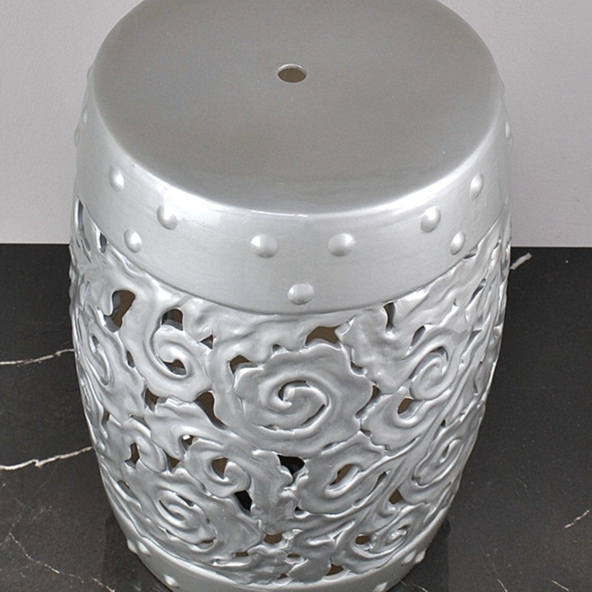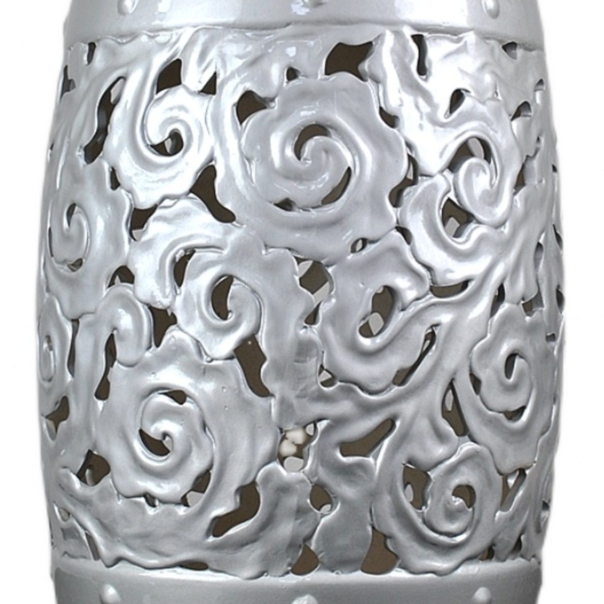 镂空雕花庭院装饰摆件陶瓷新中式鼓凳银户外灰色家居阳台圆柱