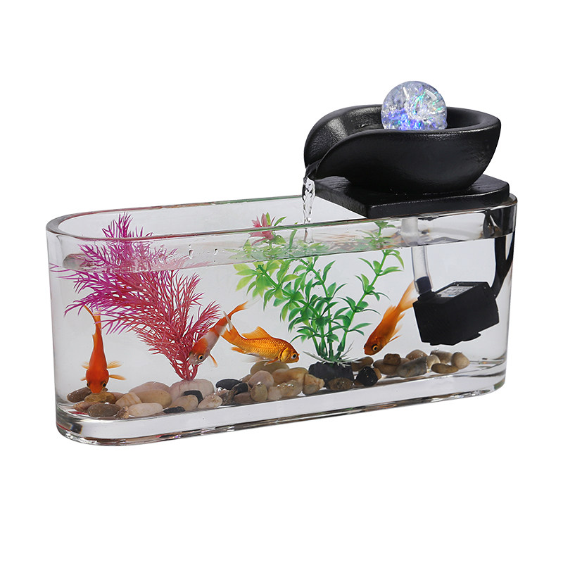 玻璃鱼缸流水招财摆件开业礼品桌面办公室客厅室内装饰品转运球