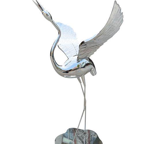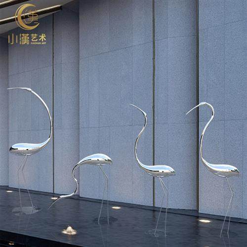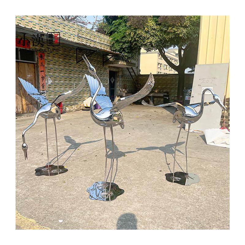 现货不锈钢仙鹤雕塑镜面草坪水池园林景观装饰抽象白鹭火烈鸟摆件