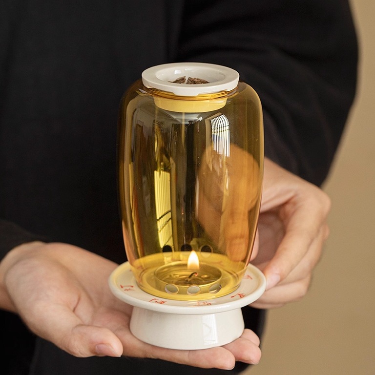 国潮陶瓷香薰炉莲花台摆件创意蜡烛烘香小夜灯氛围灯客厅桌面装饰