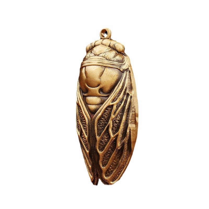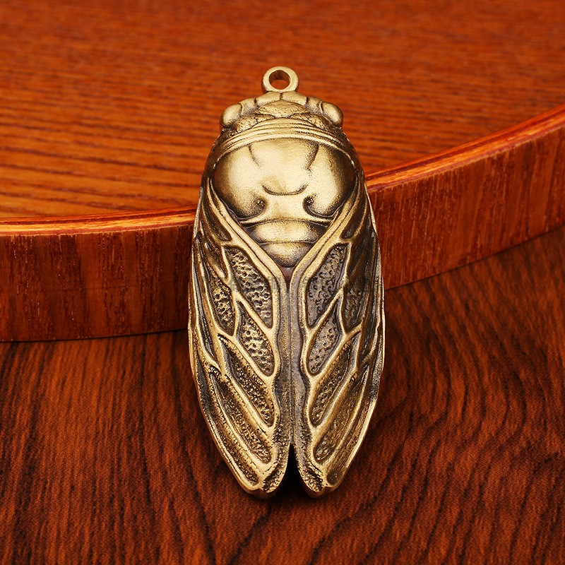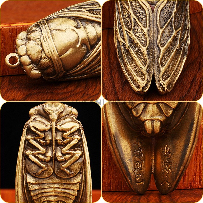 纯黄铜蝉摆件大号知了手把件一鸣惊人仿真模型铜工艺品文玩把铜器
