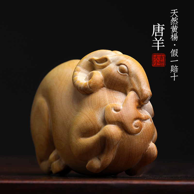极速天然小叶黄杨木m实木木雕刻唐羊生肖羊文玩手把件胖羊可爱羊