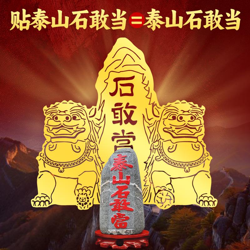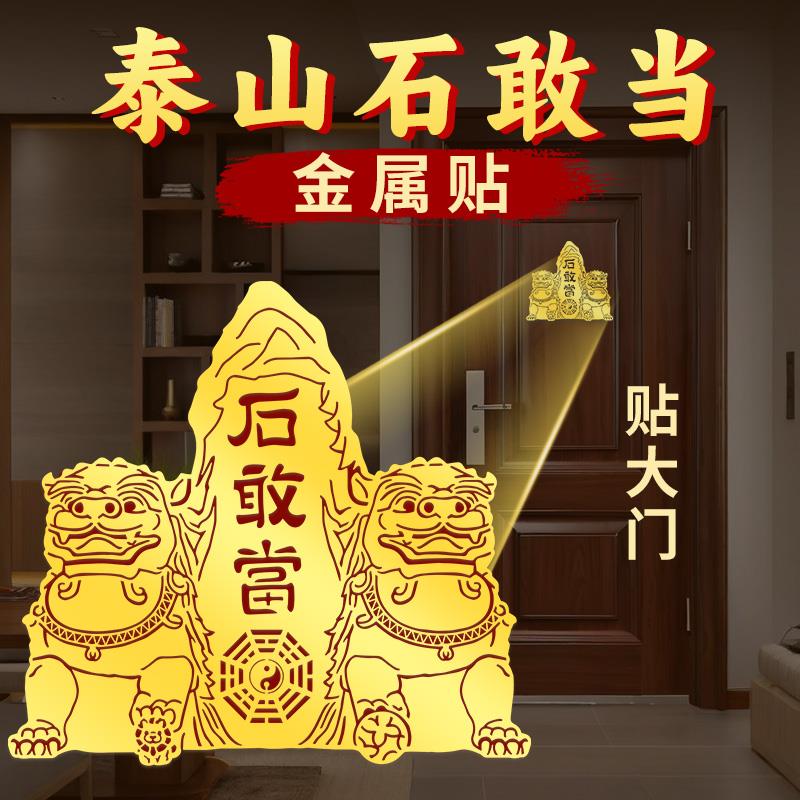 泰山石敢当贴纸贴片路冲玻璃小铜狮子一对摆件大门口室内室外挂件