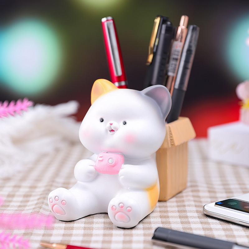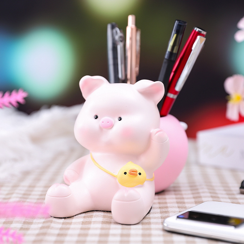 创意快乐憨憨笔筒支架摆件卡通可爱兔子收纳桶学生桌面装饰礼品