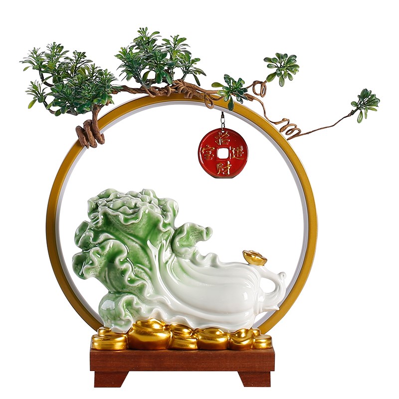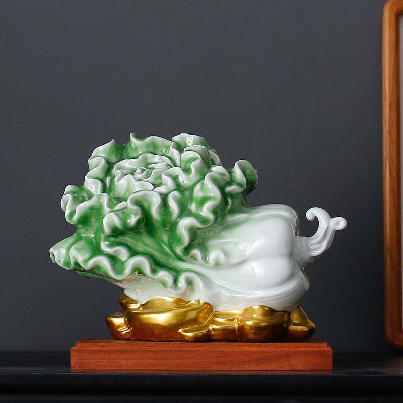 速发彷真玉白菜摆件陶瓷百财如意客厅酒柜办公室桌工艺装饰品开