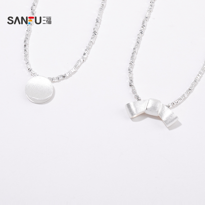 三福休闲拉丝碎石链短项链单条 时尚个性首饰配饰链条