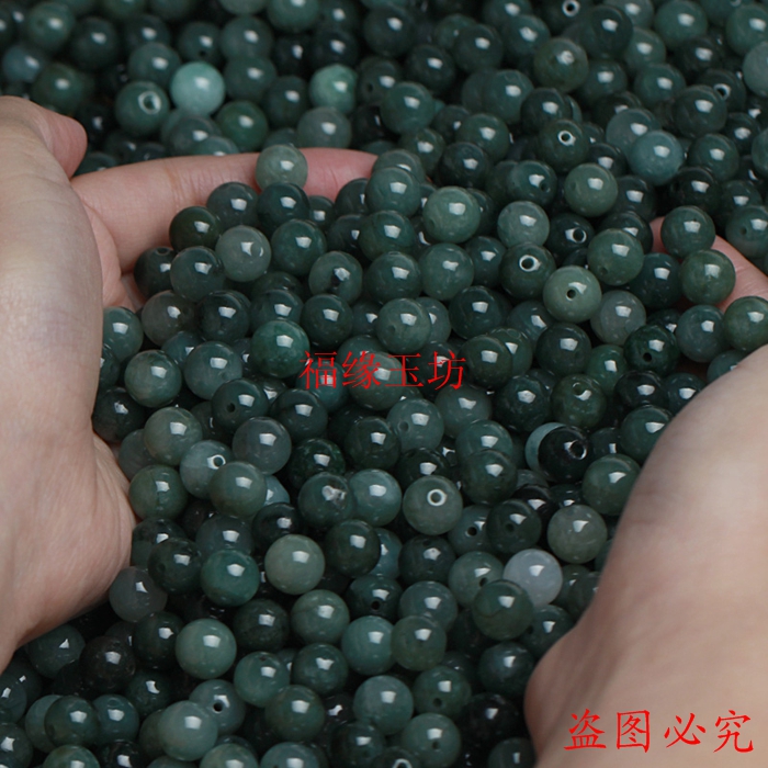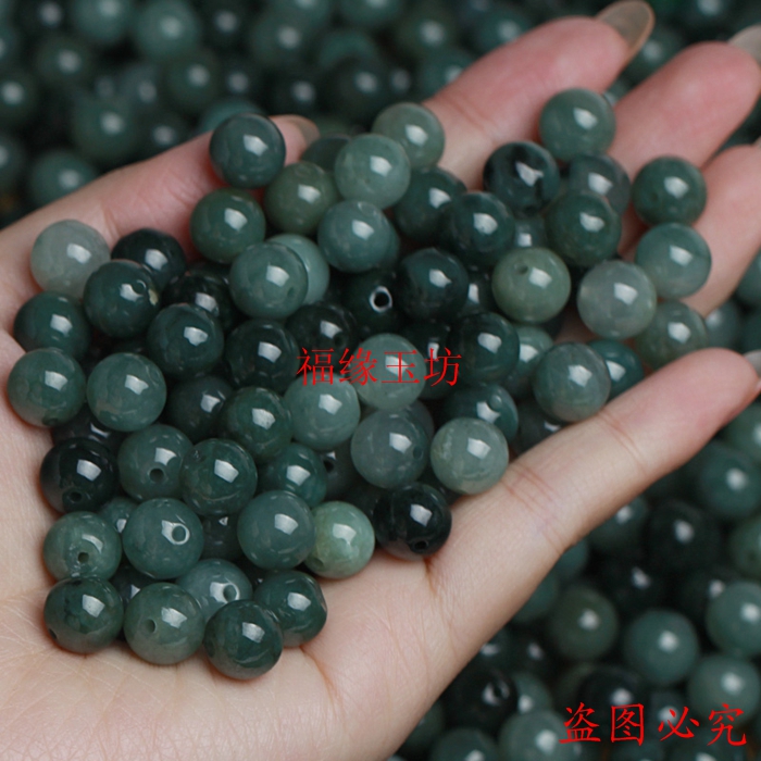 【整包走货】翡翠散珠a货缅甸油青珠冰种diy项链手链玉珠子