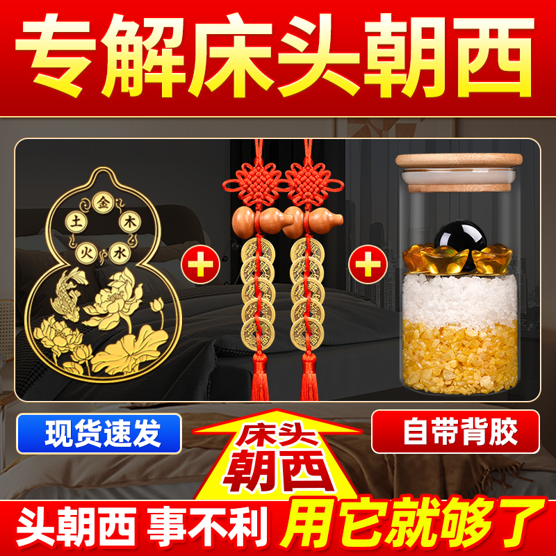 床头朝西隐形贴摆件安忍水瓶子葫芦五帝钱解决卧室对厕所家居问题