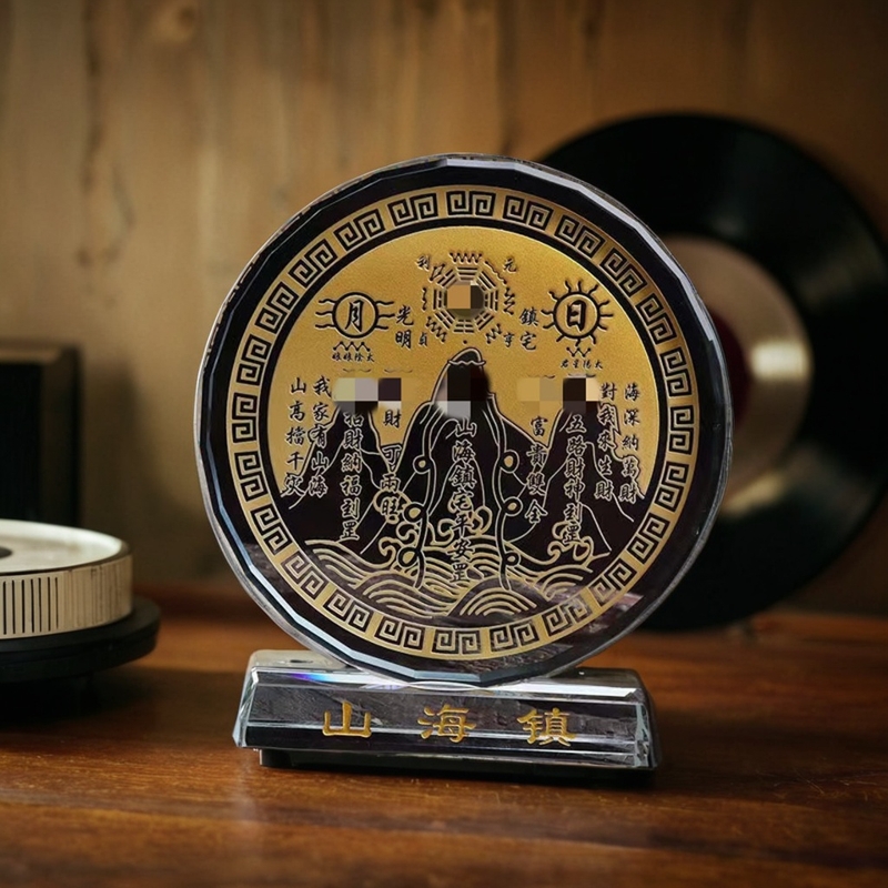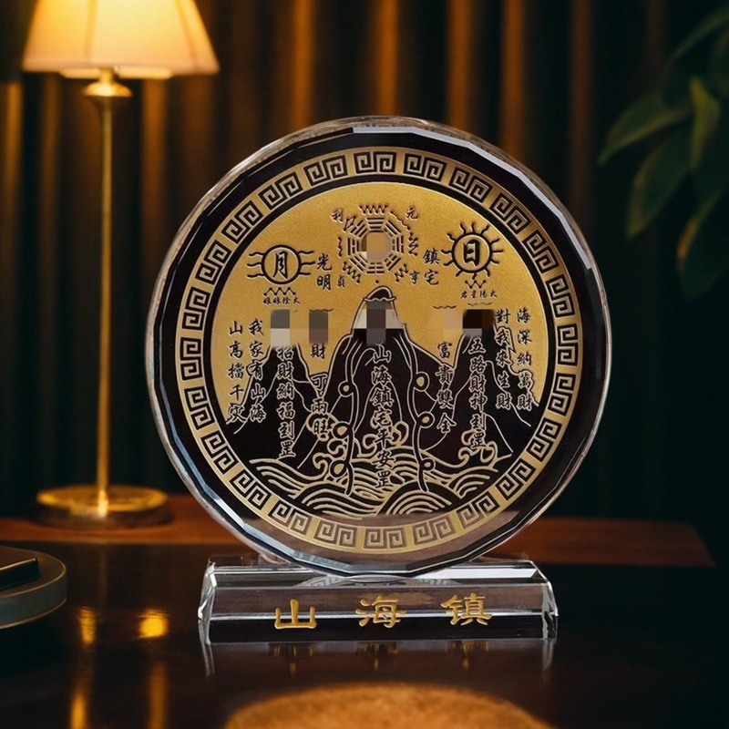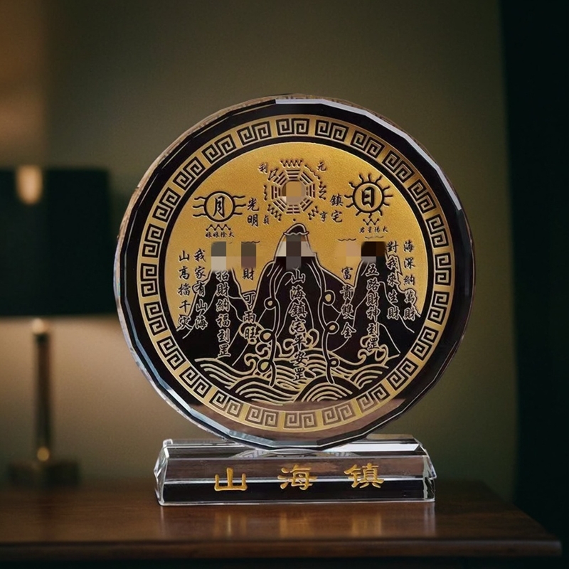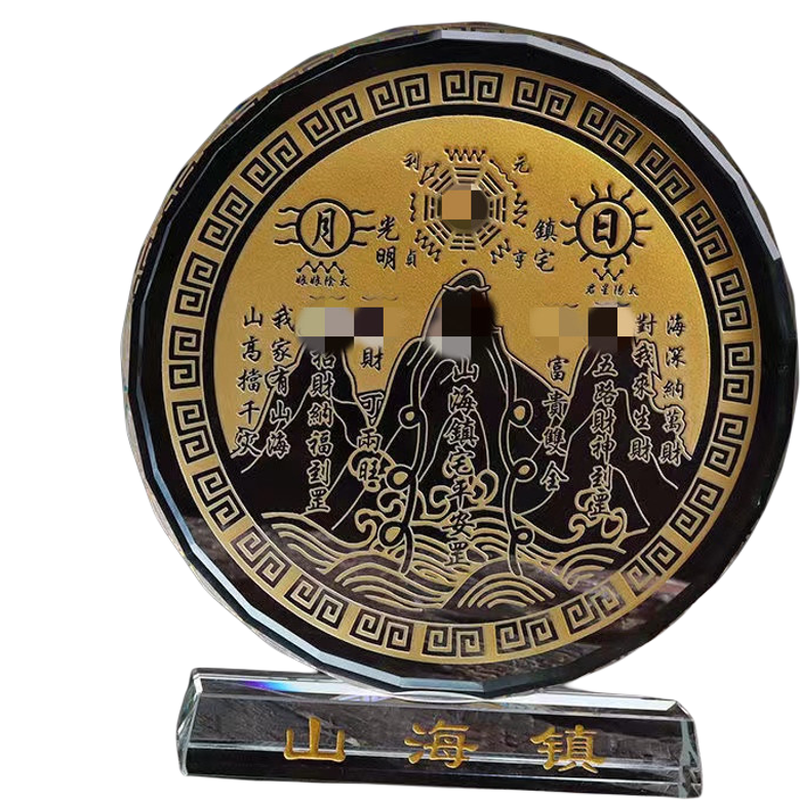 水晶雕刻山海镇八卦镜摆件玄关风水家居隔断客厅窗台楼梯摆件