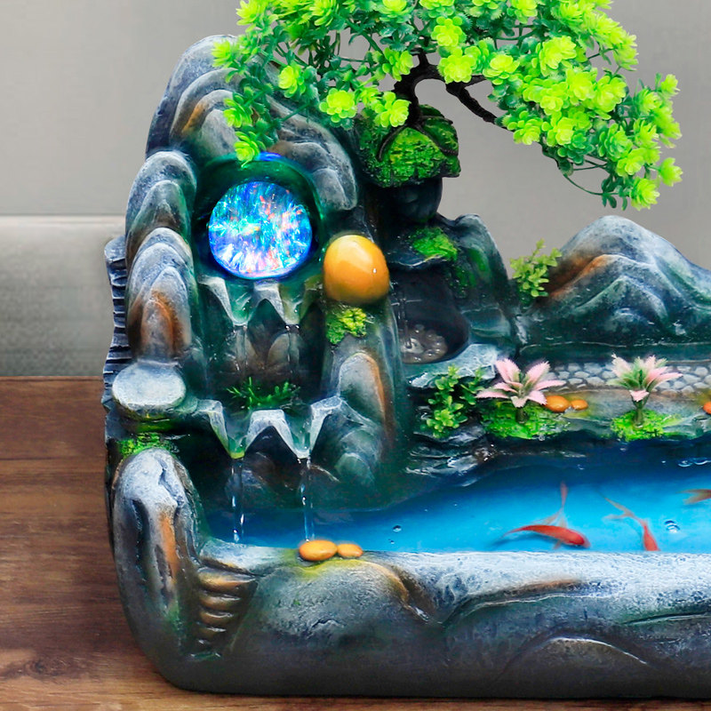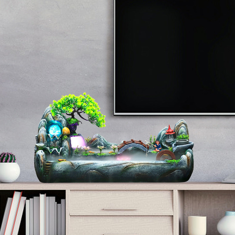 创意假山桌面生财鱼缸流水客厅山水瀑布景观水景摆件循环水小喷泉