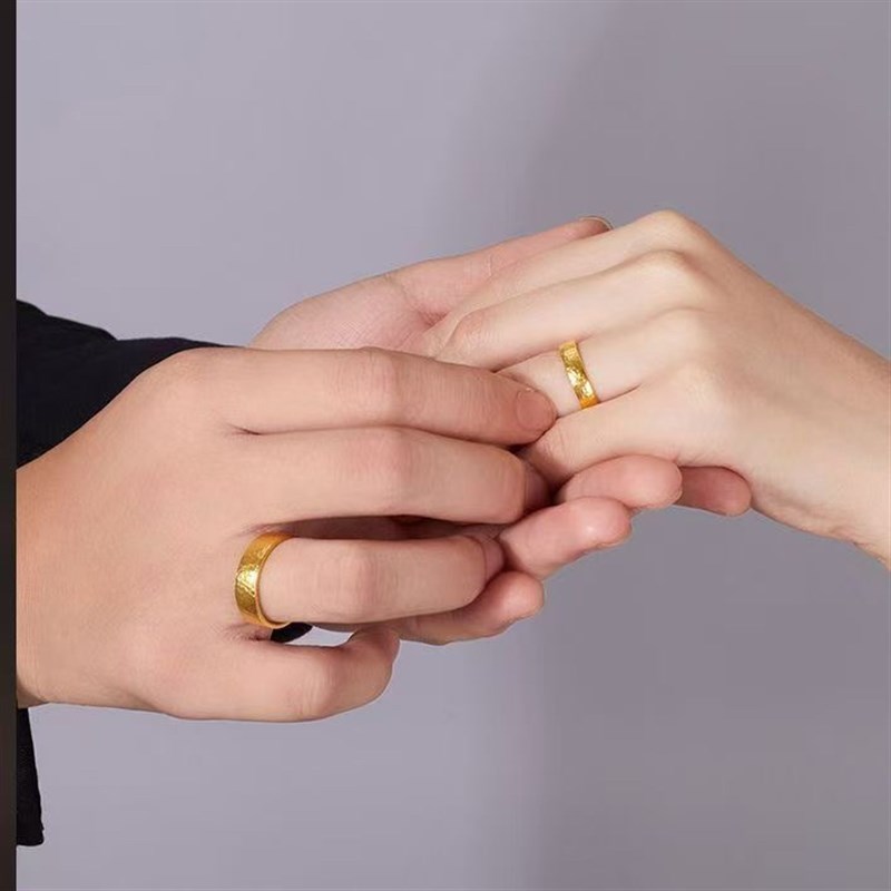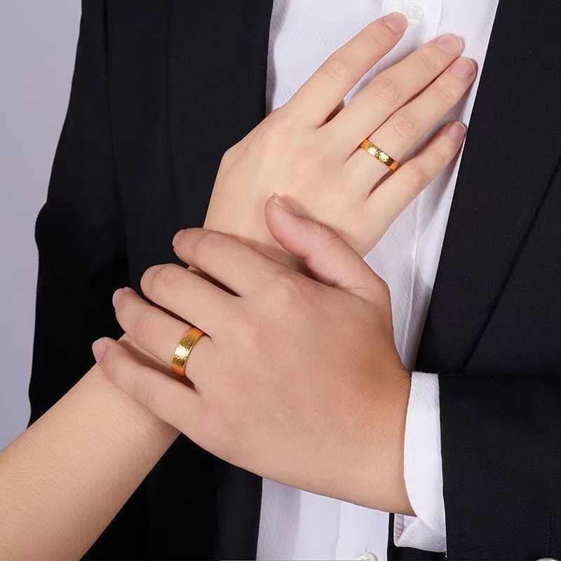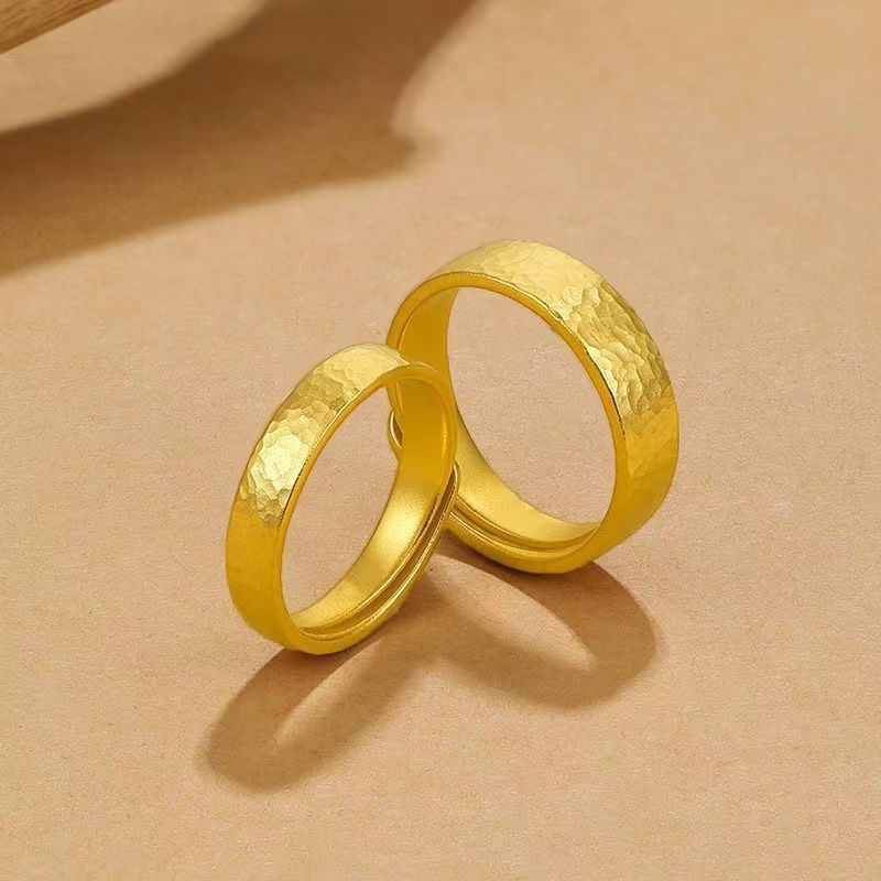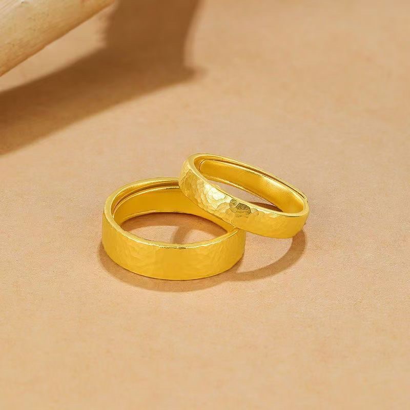 新款金包银锤纹开口戒指男女同款情侣对戒情P人节送女友生日礼物