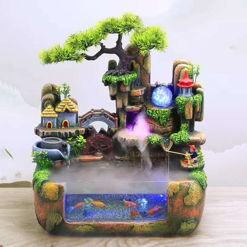 客厅假山流水喷泉循环水小高山小型瀑布山水鱼缸水景装饰造景摆件