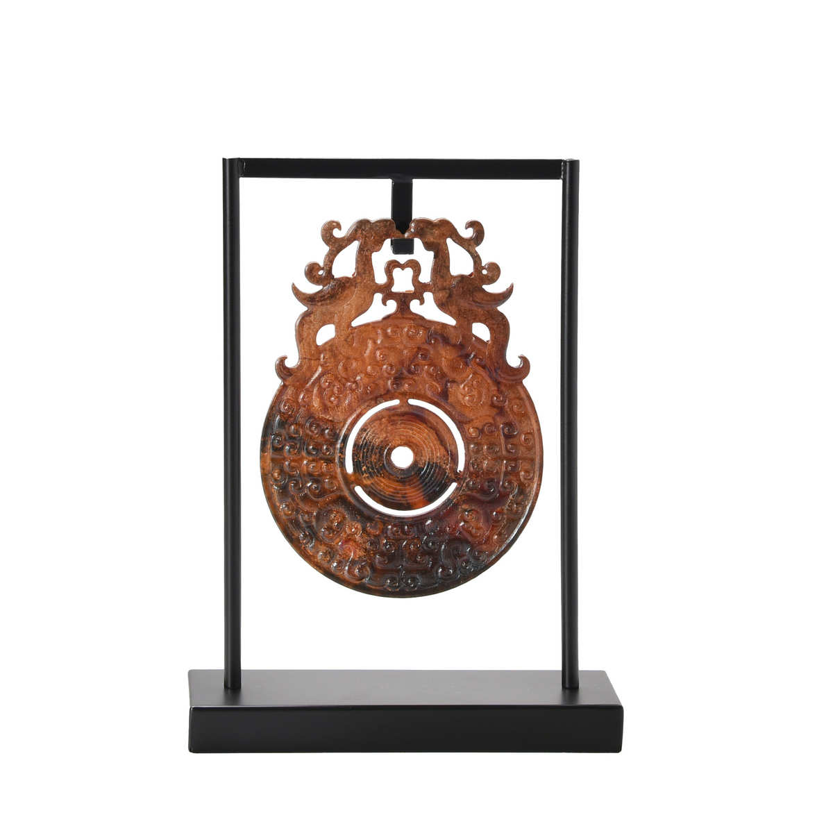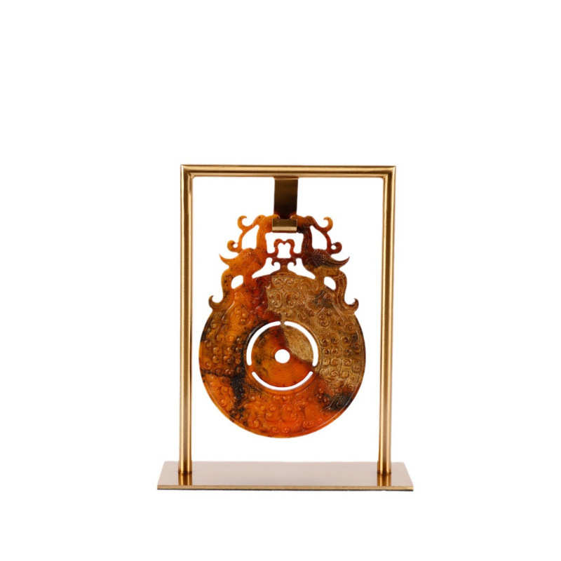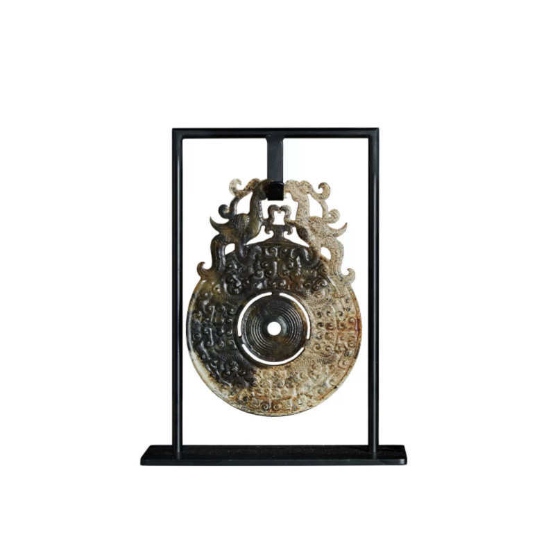 新中式样板间书房展示柜陈列家具玄关天然玉璧摆件酒店搭配装饰品