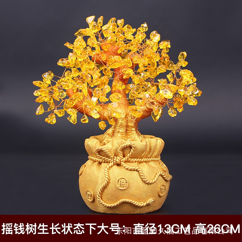 黄水晶摇钱招财树发财树店铺开业送礼钱J袋摆件家居酒柜装饰工艺