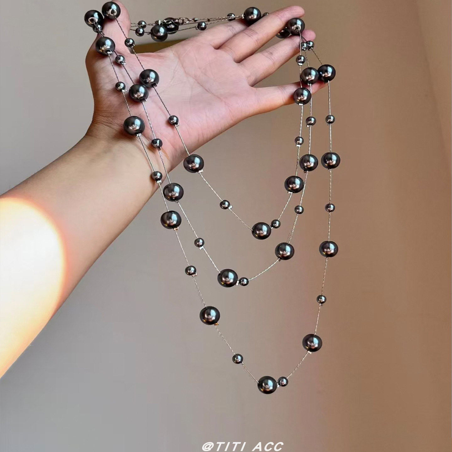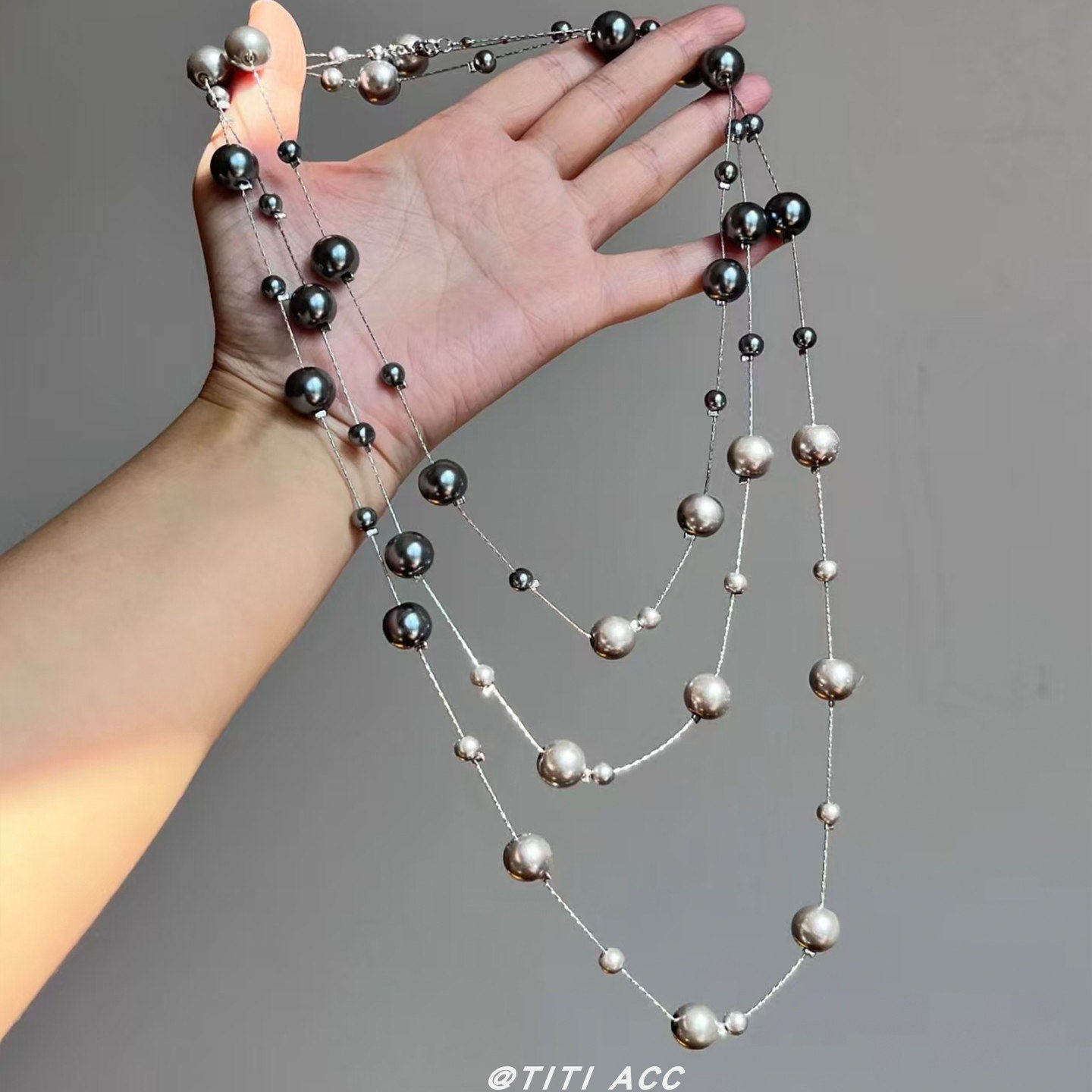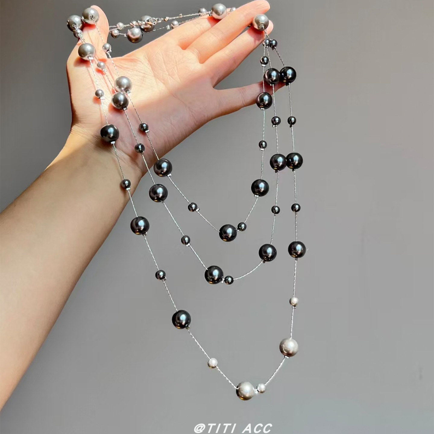 多层叠戴灰色满天星珍珠项链女配饰复古气质轻奢高级感长款毛衣链