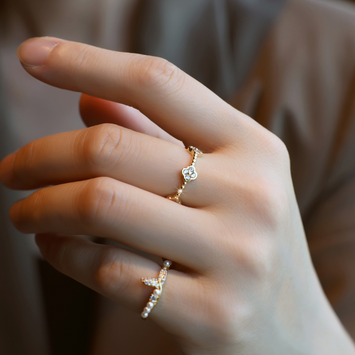 ZOXI轻奢高级感四叶草戒指女小众设计食指小拇指开口戒叠戴尾戒