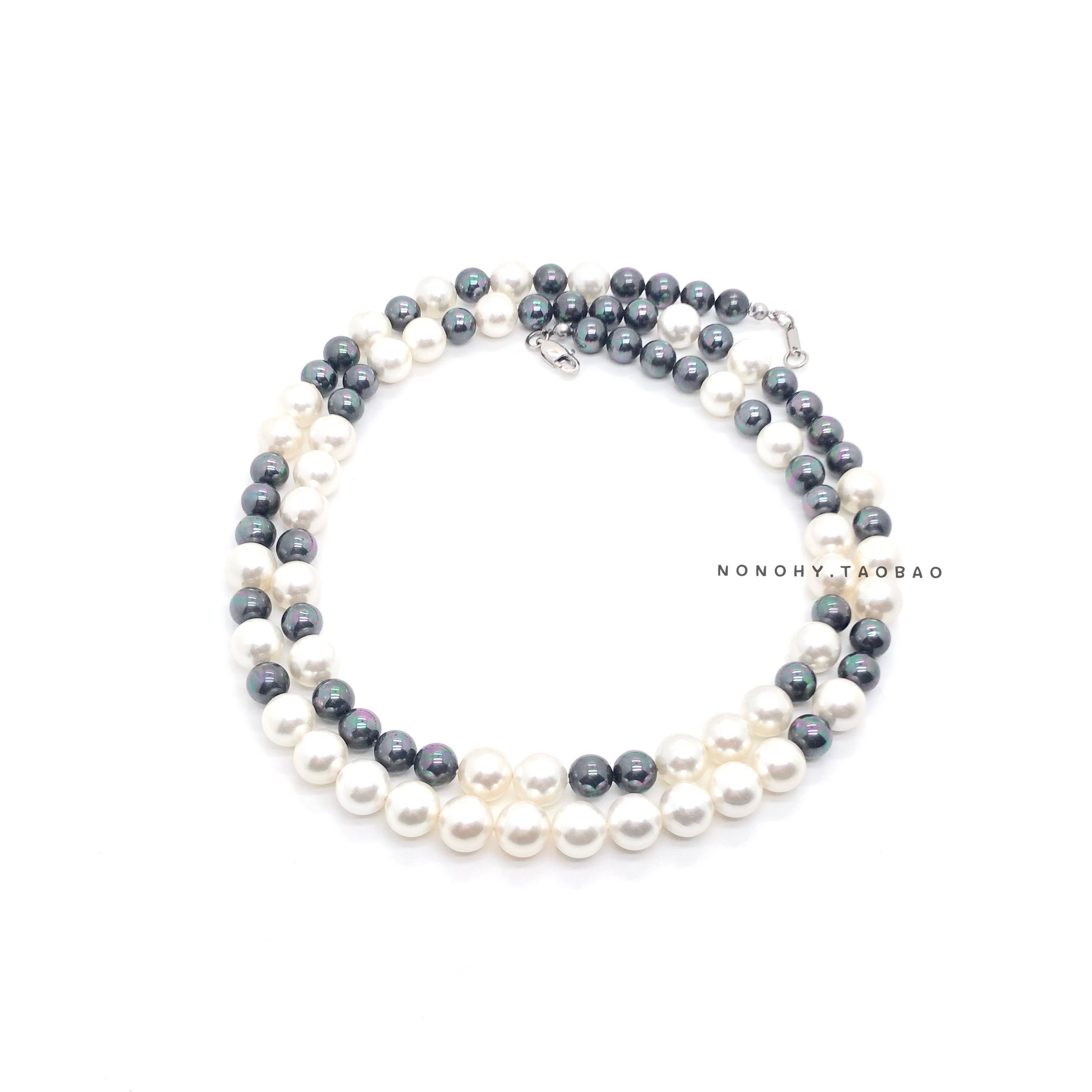 周震南国潮同款黑白印花贝壳珍珠毛衣链长款个性嘻哈男女街头时尚