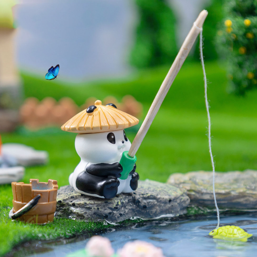 微景观树脂工艺品创意垂钓青蛙熊猫公仔动物造景 DIY饰品迷你摆件