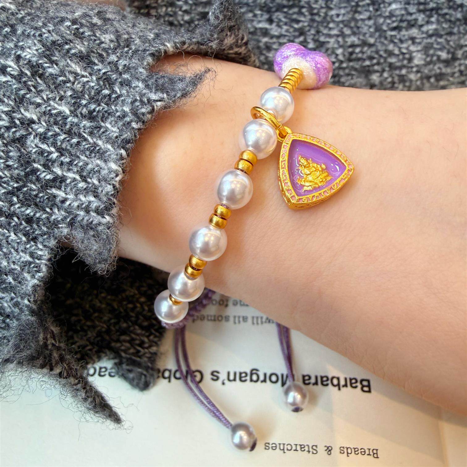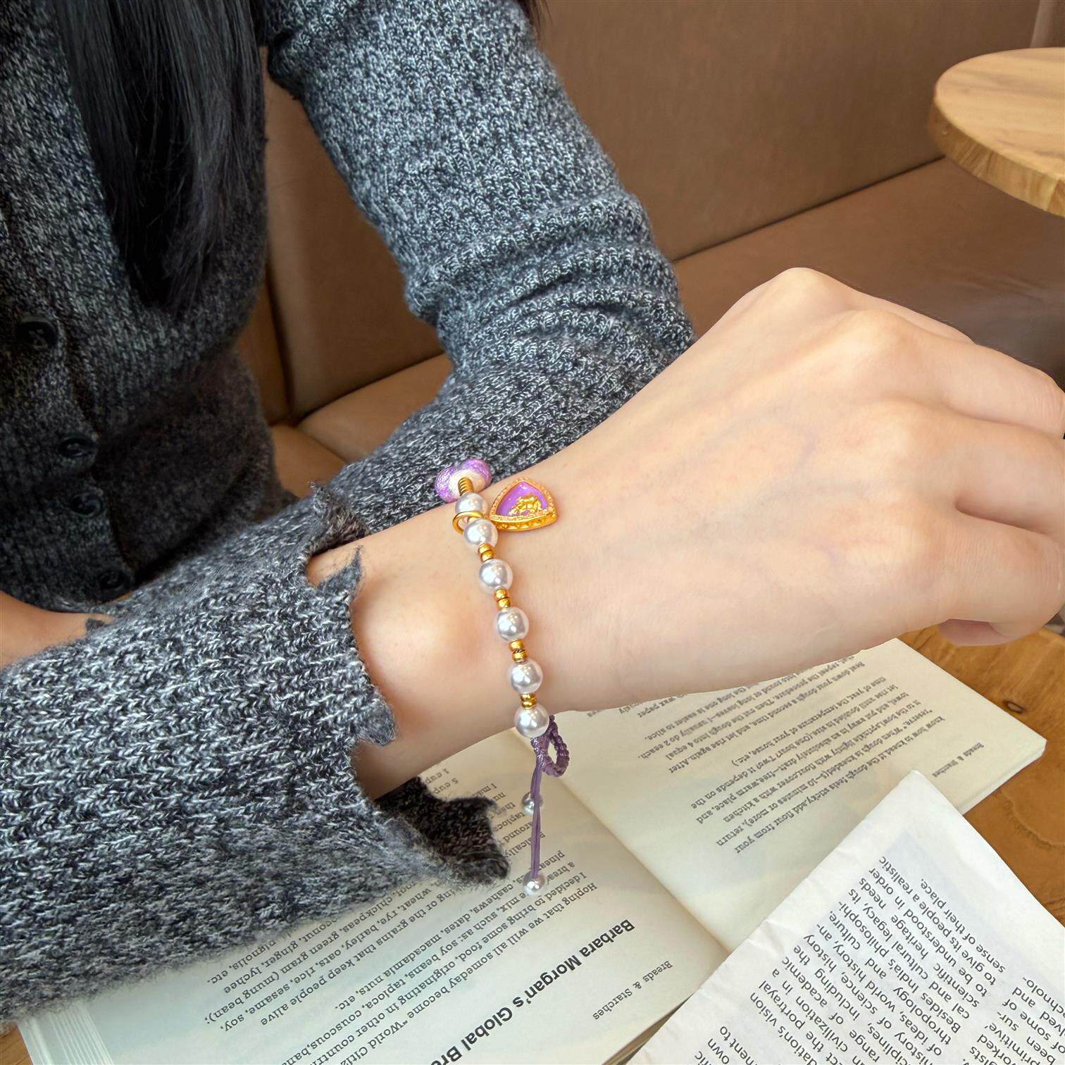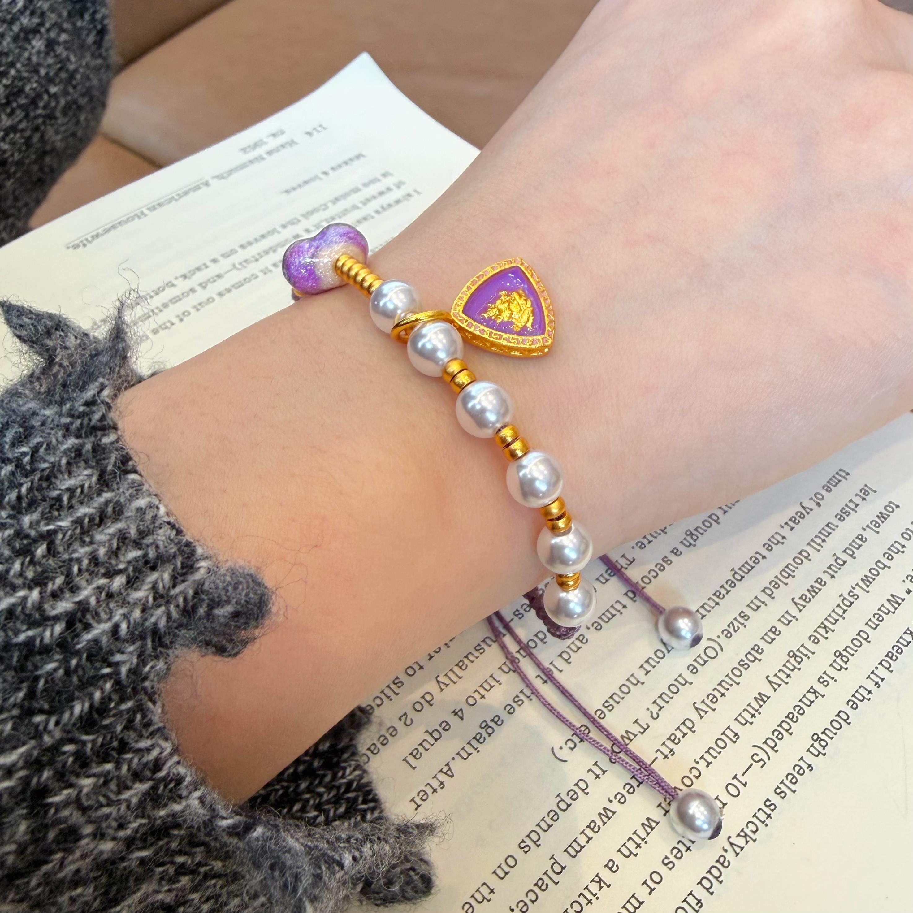 铜合金手链 新中式珐琅彩紫色屁桃爱心手链精致手工心形编绳手串