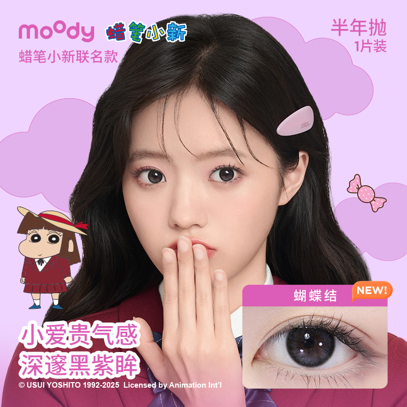 moody美瞳半年抛1片彩色隐形眼镜蜡笔小新联名自然扩瞳奶茶合集