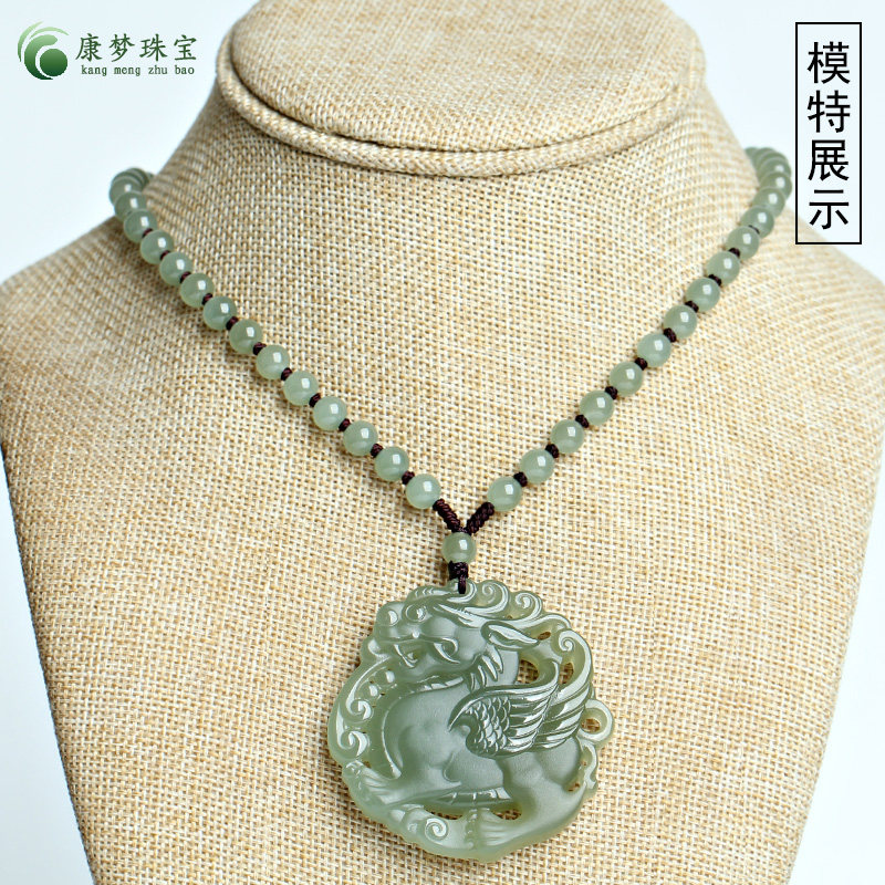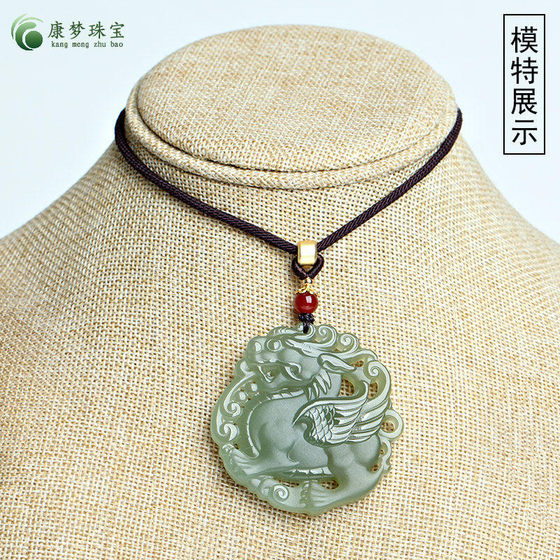 天然和田玉麒麟吊坠青玉麒麟献瑞挂件男女款玉石项链饰品玉佩玉牌