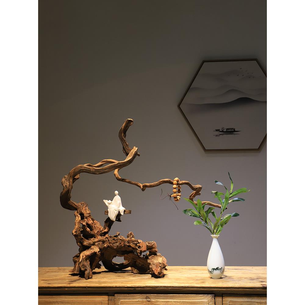 枯木风化根雕新中式禅意桌面摆件玄关电视柜边几茶桌创意家居装饰