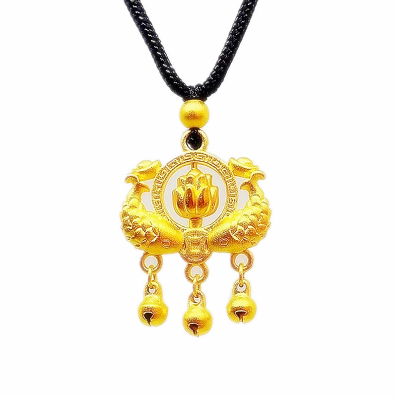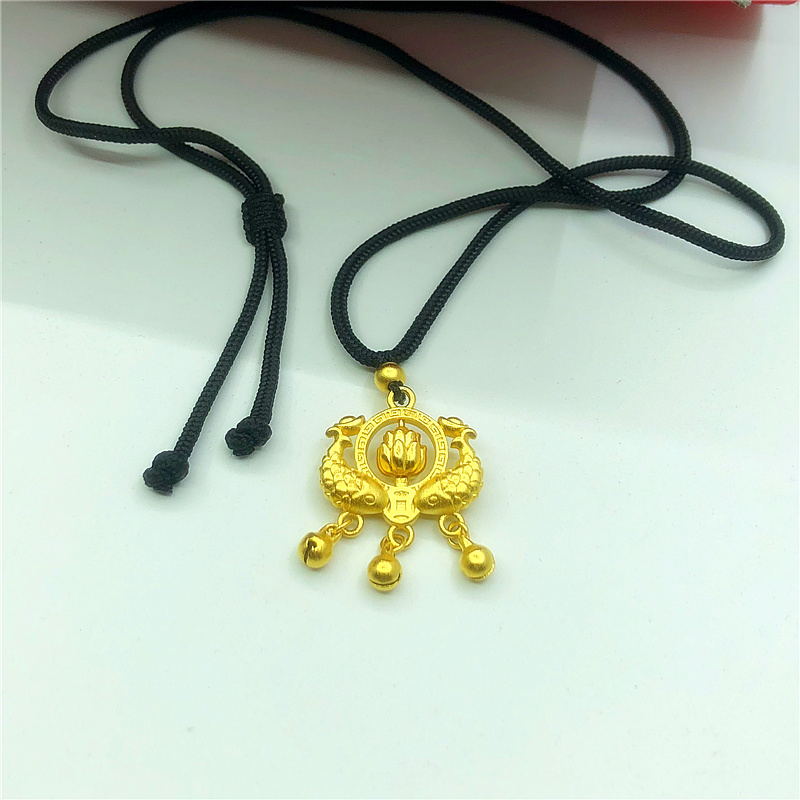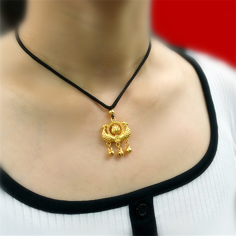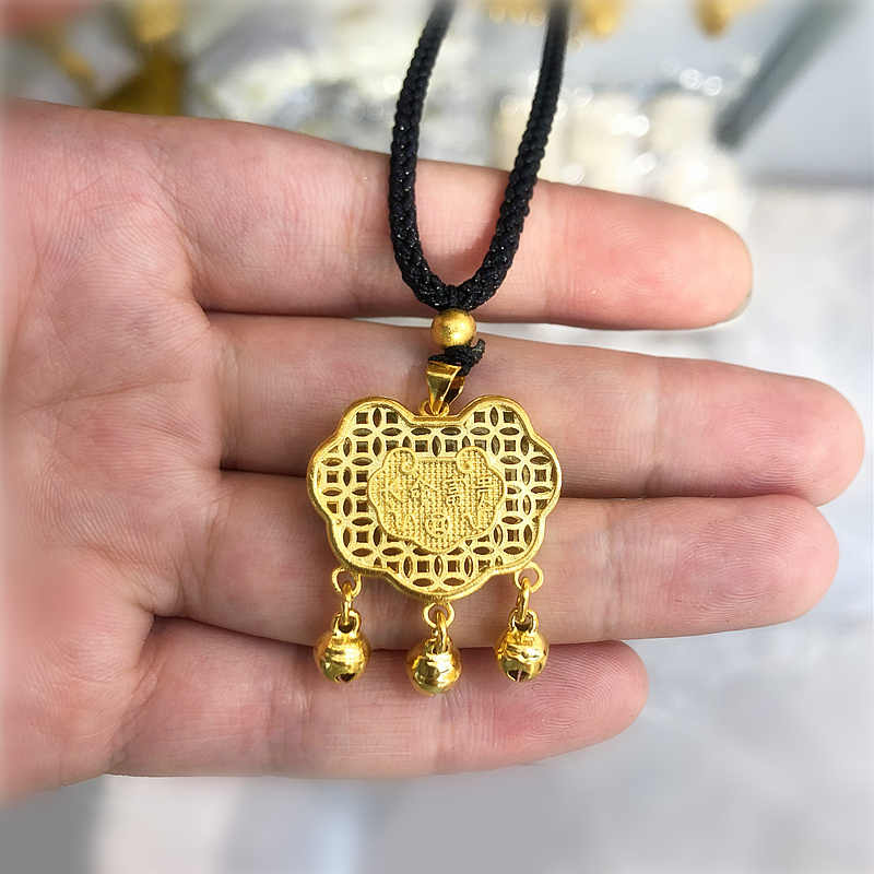 越南沙金镂空福长命锁项链双鱼戏珠百岁锁古法传承福字铃铛锁道具