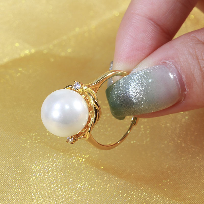 DIY珍珠配件 S925纯银轻奢时尚遮瑕款珍珠戒指花托 小众设计感女