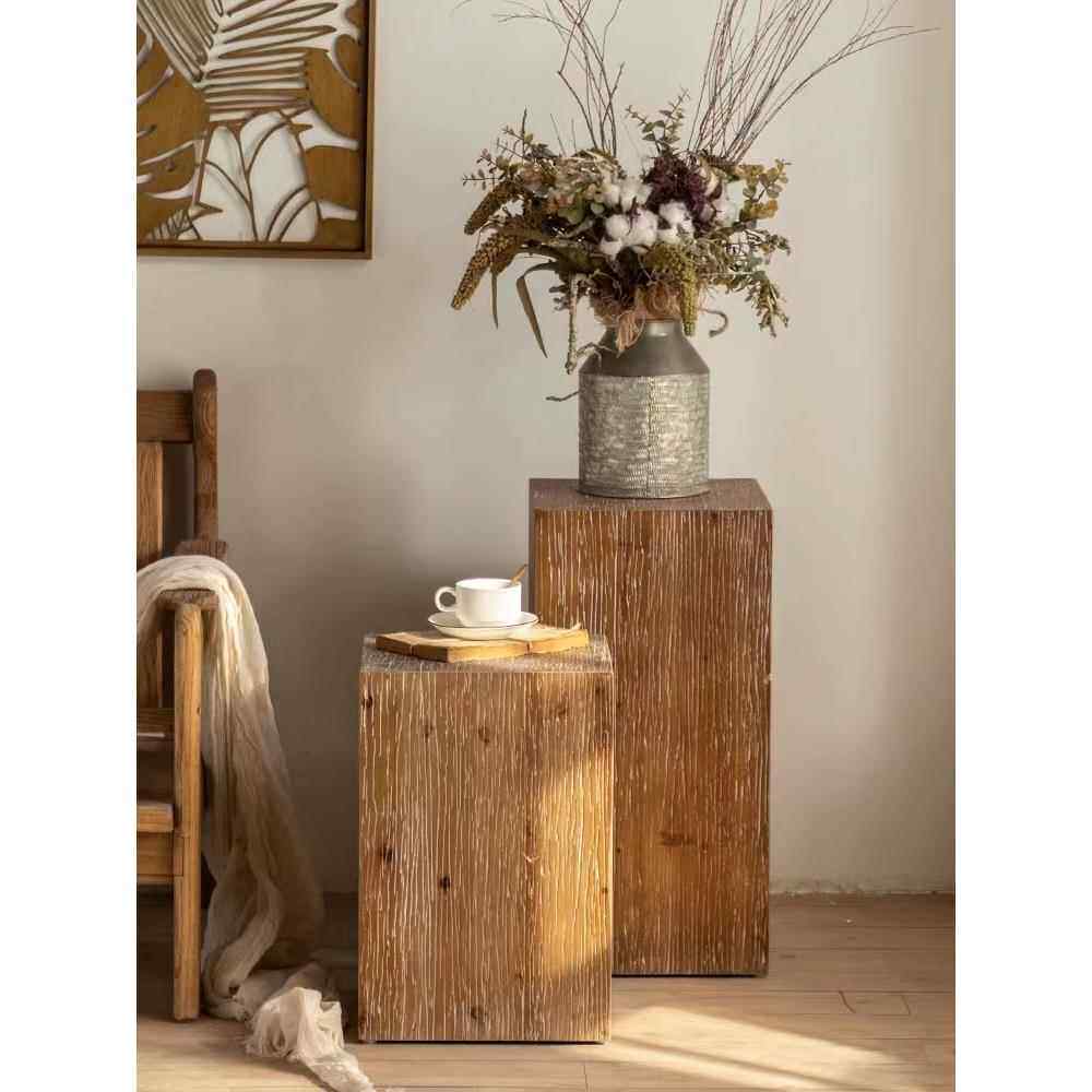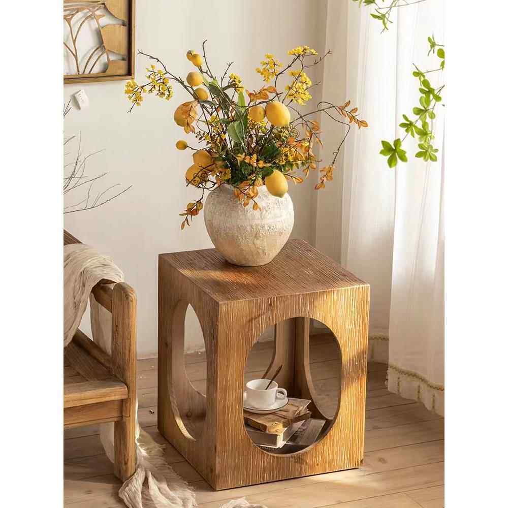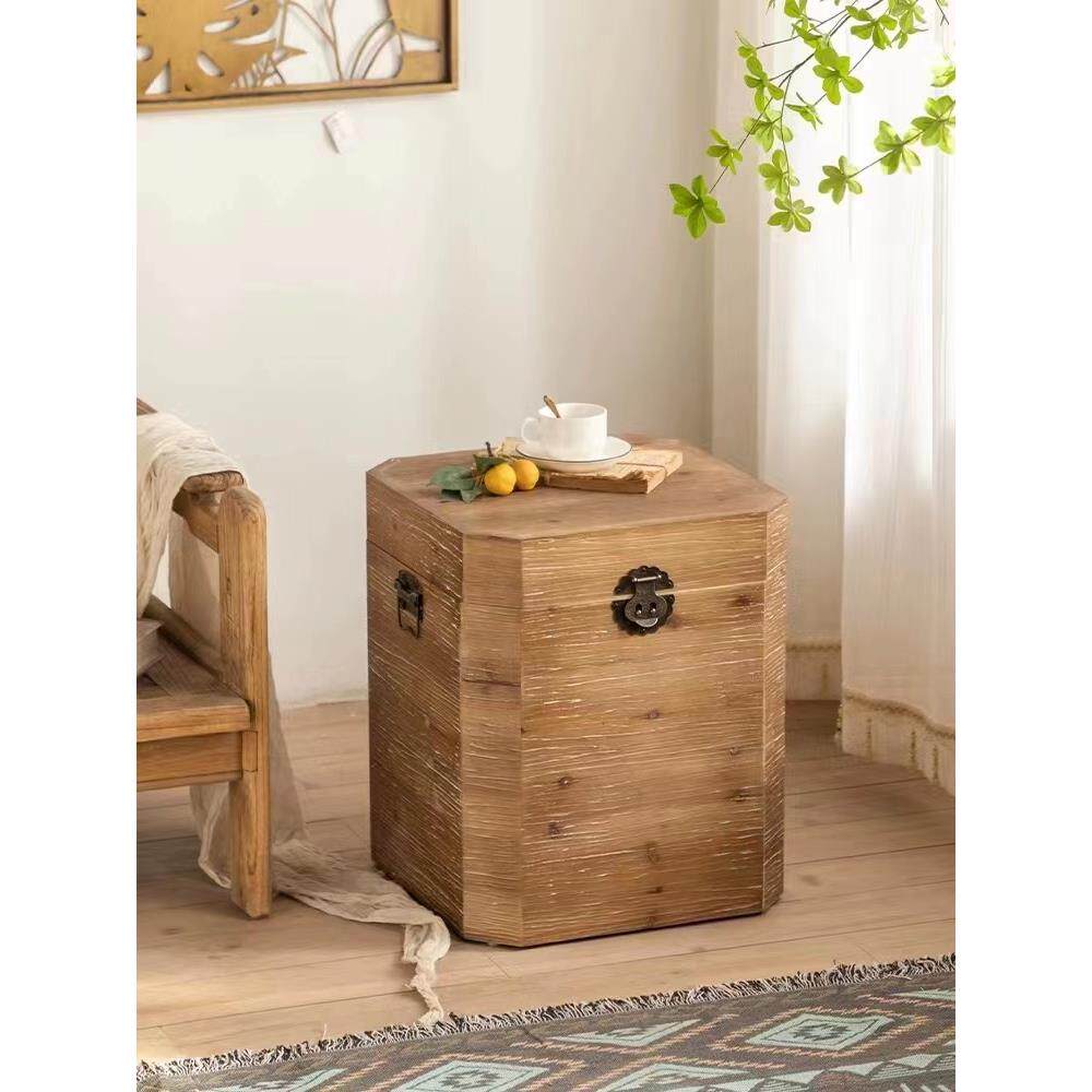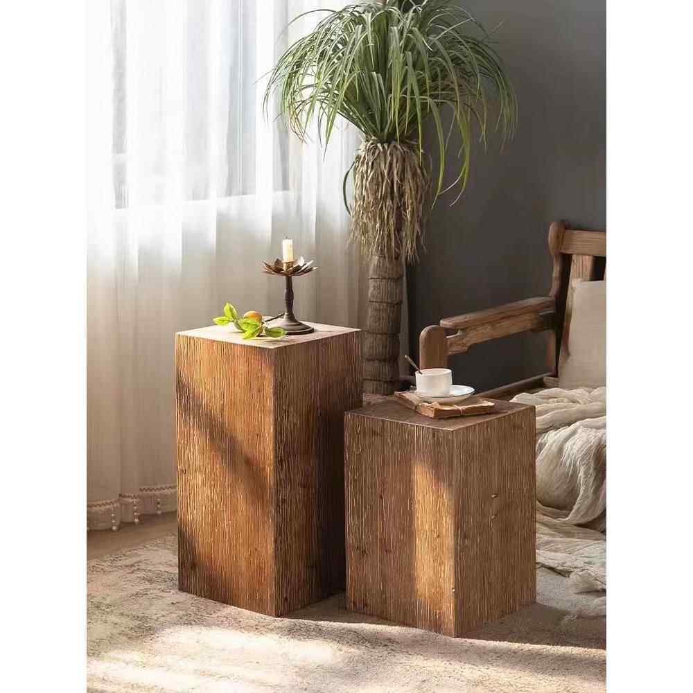 田园老实木存储角桌客厅沙发卧室床边咖啡桌Wabi-Sabi风格民宿小