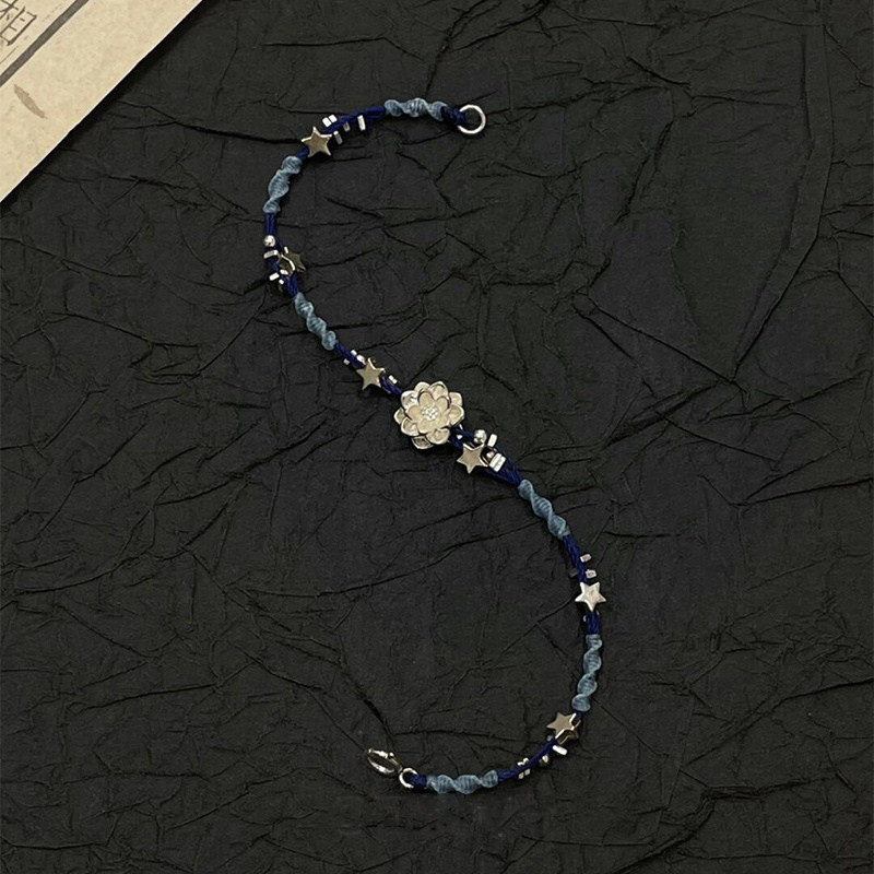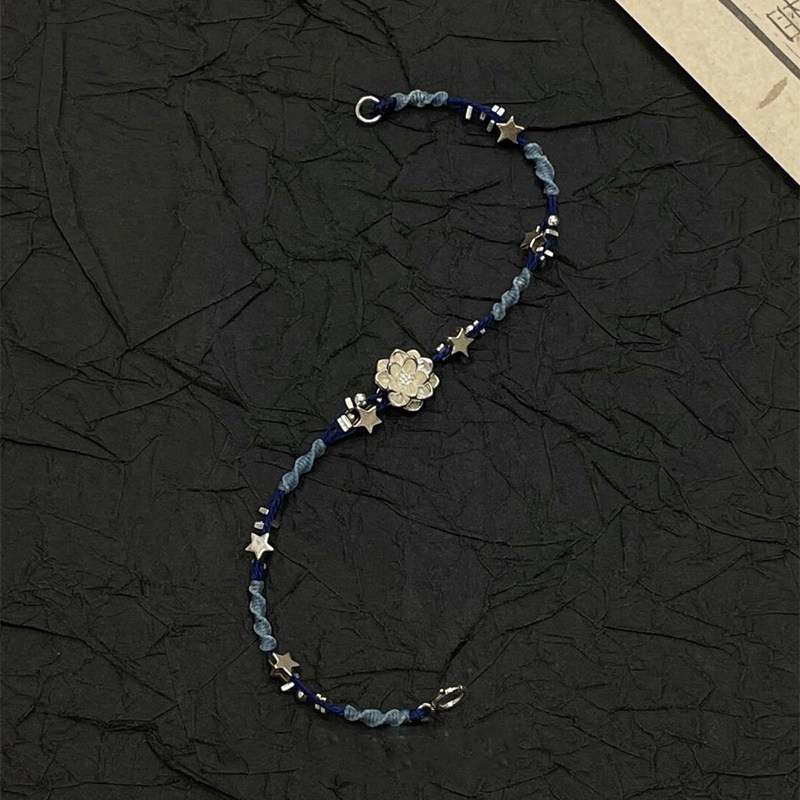 民族风蓝色编织莲花手链女款2025新款轻奢小众精致手绳高颜值手饰