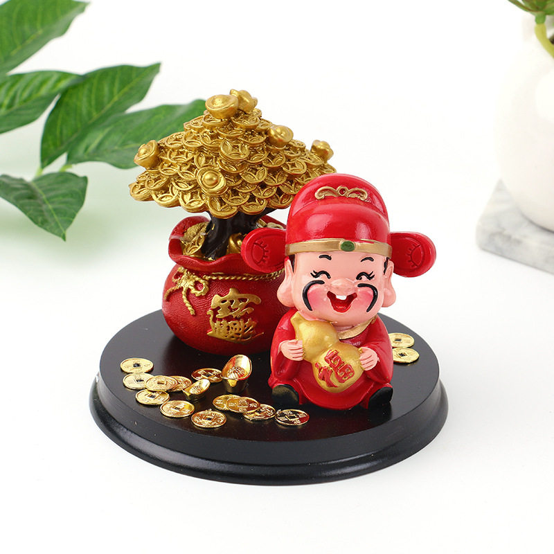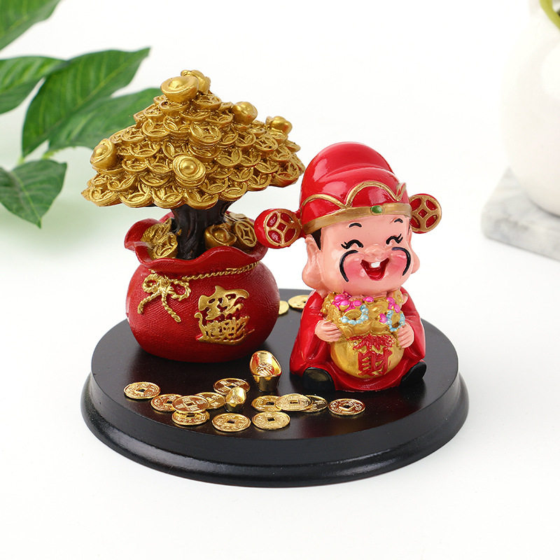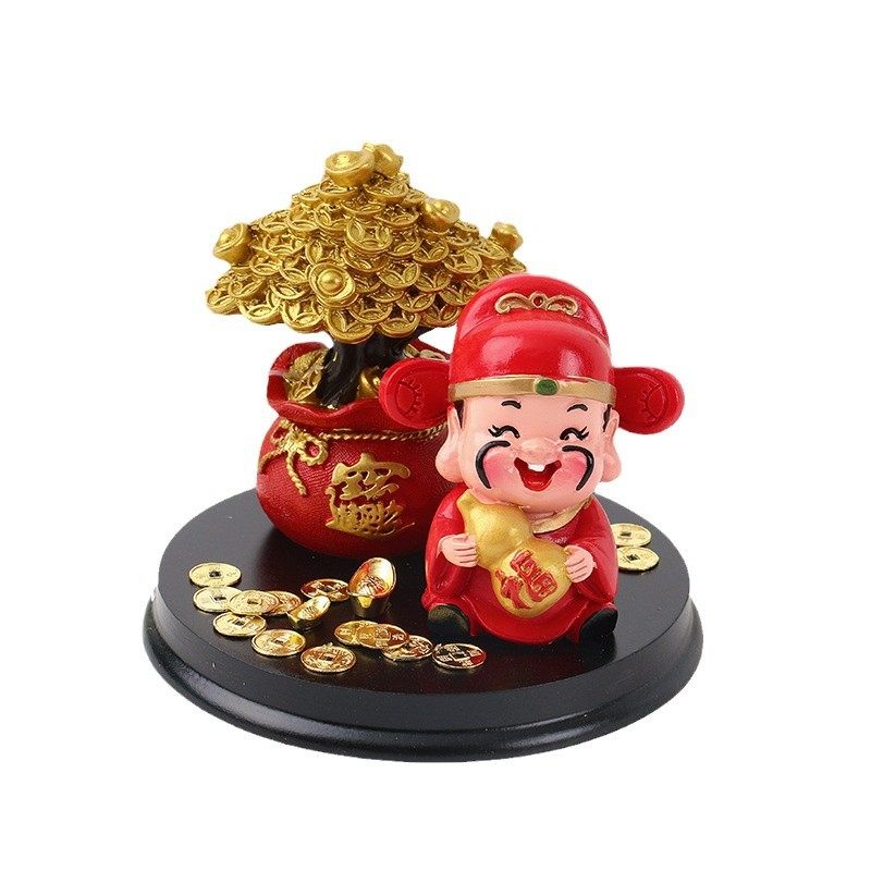 创意卡通新颖树脂工艺品汽车摆件中控台财神爷发财树组合装饰