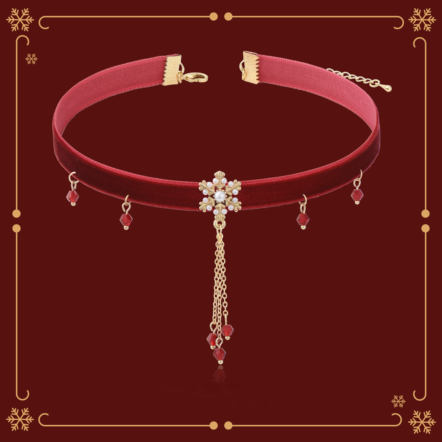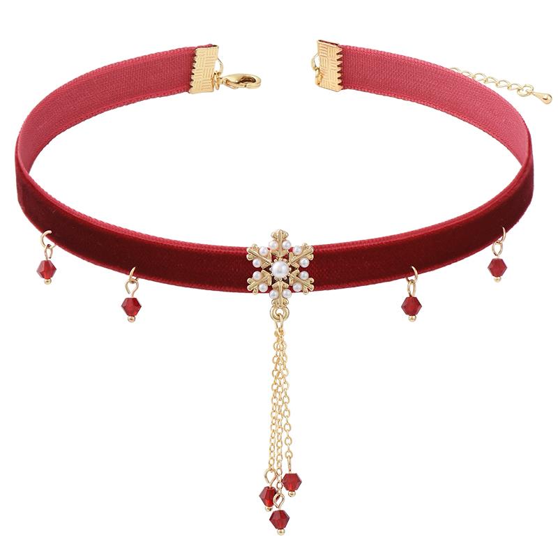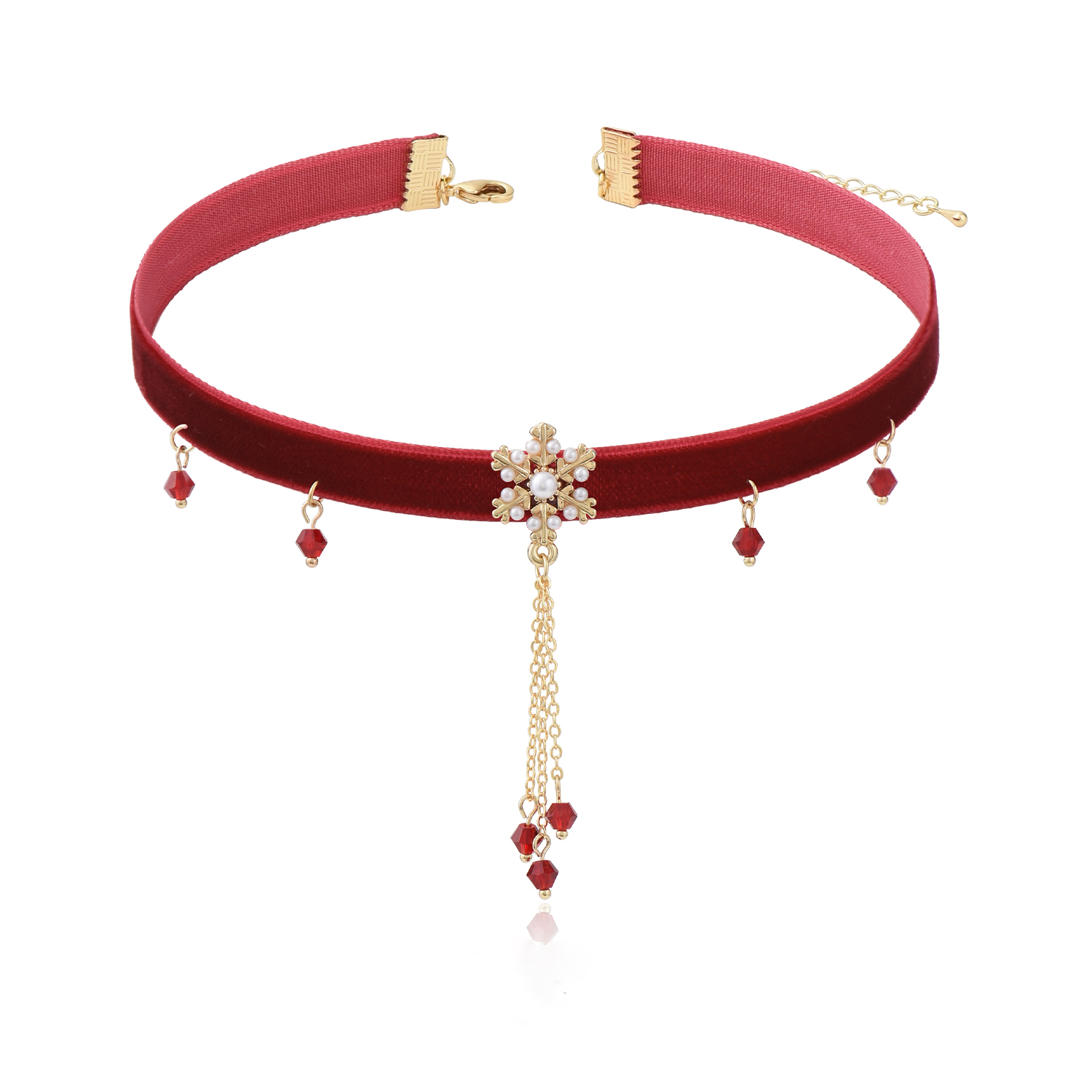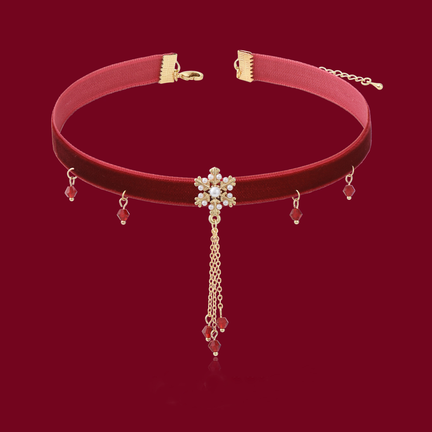 原创珍珠雪花流苏颈链圣诞节红色锁骨链女新年过年喜庆结婚choker