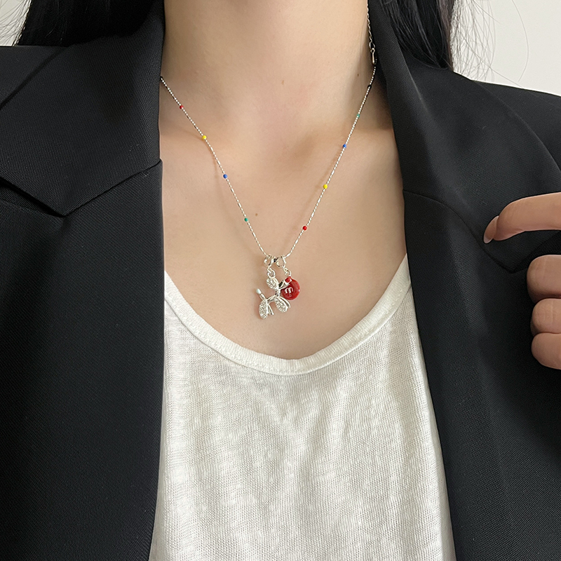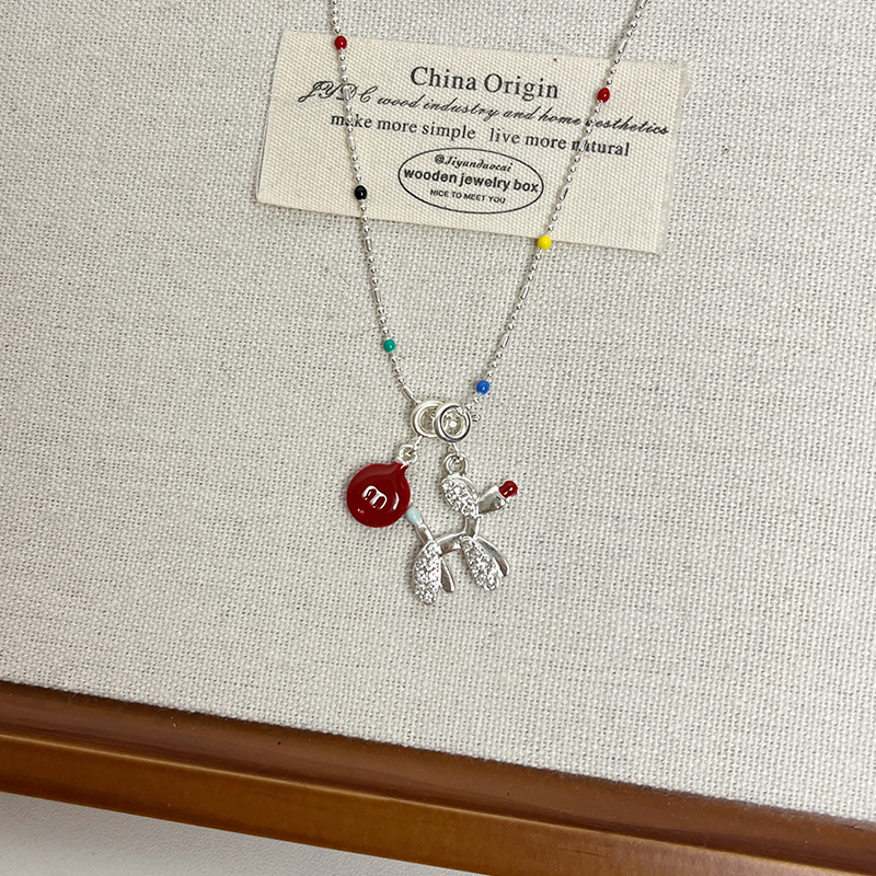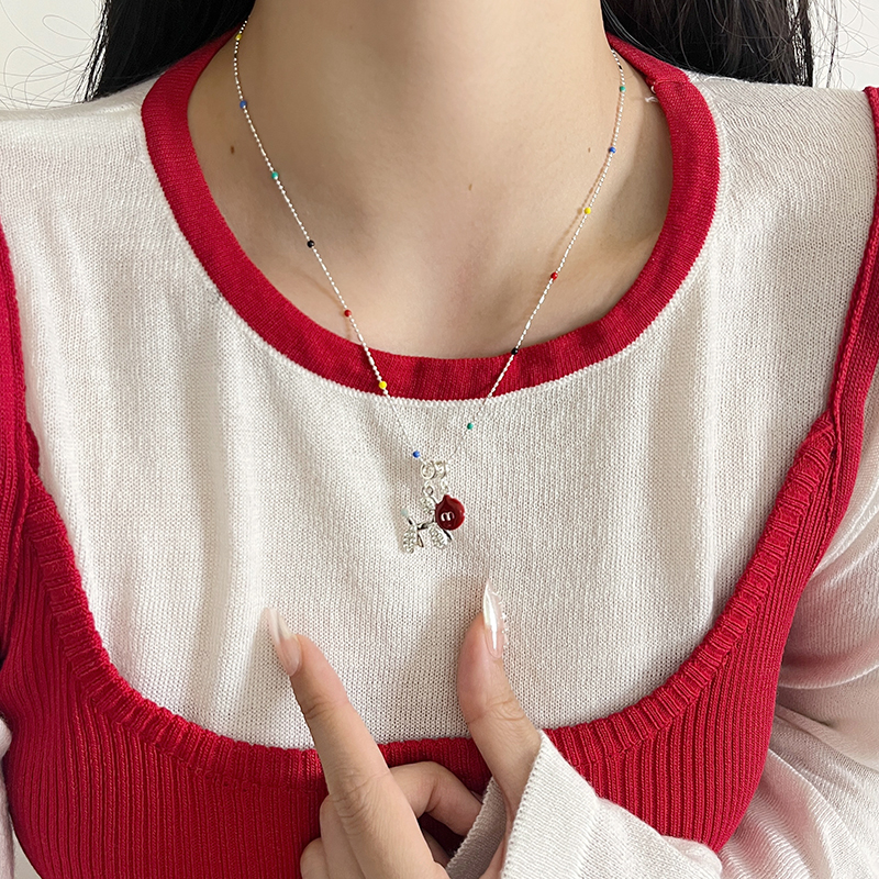 红色m豆小狗项链女2025新款高级感可爱小众锁骨链毛衣链卫衣配饰