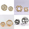 金色圆球摆件 现代几何金属黑色编织球装饰品设计师样板房售楼处