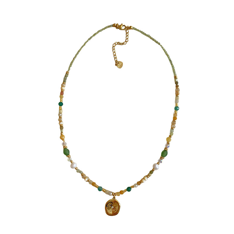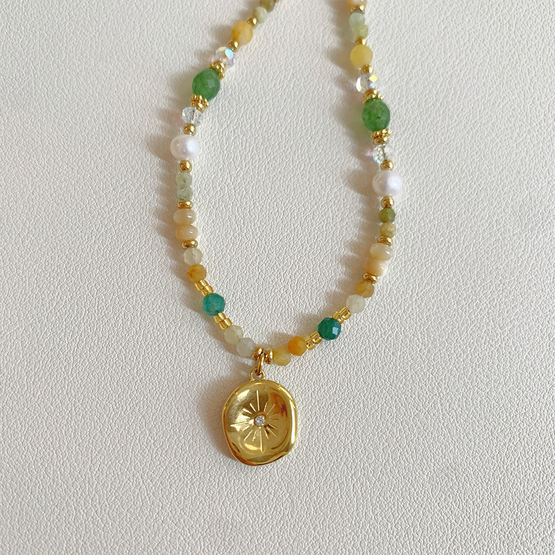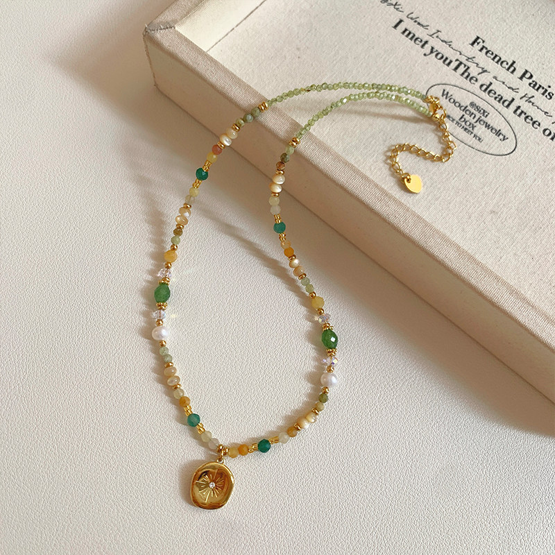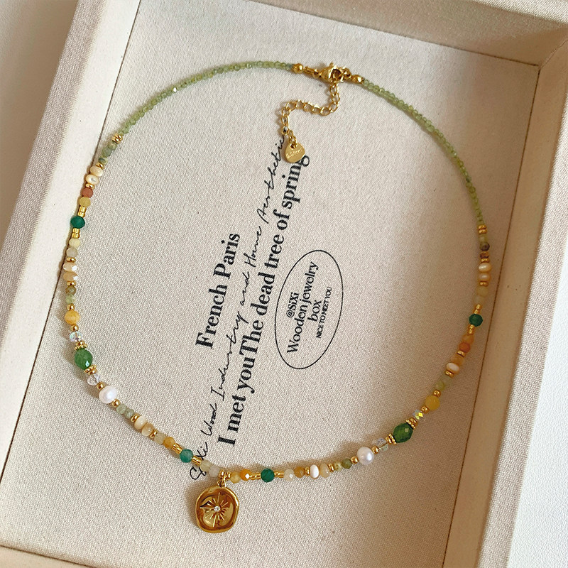 绿色水晶天然石珍珠串珠项链女2026新款高级感轻奢小众锁骨链颈链