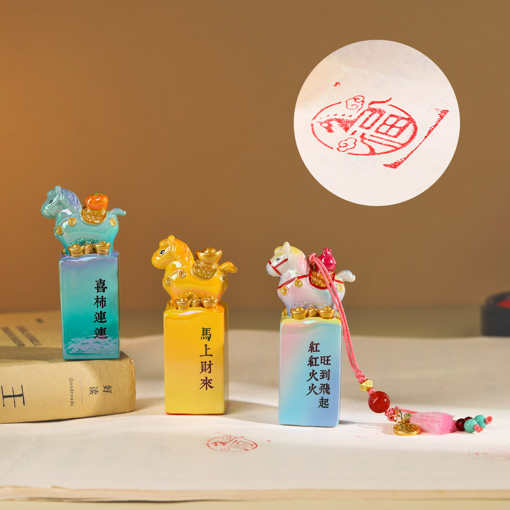 唐三彩小胖马上有钱摆件福福印章盲盒洛阳文创纪念品特色伴手礼物