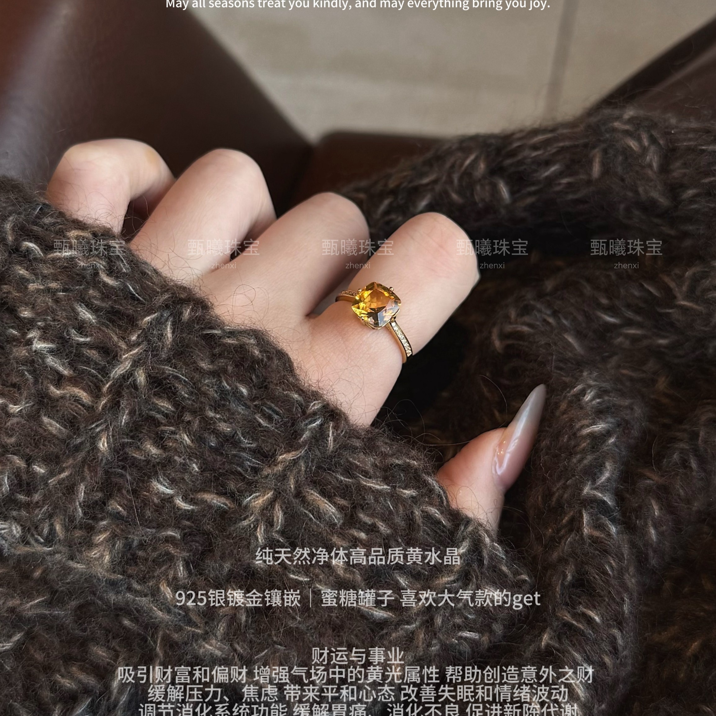 财来财来|天然巴西黄水晶S925银戒指新年招财冰种活口送闺蜜礼物