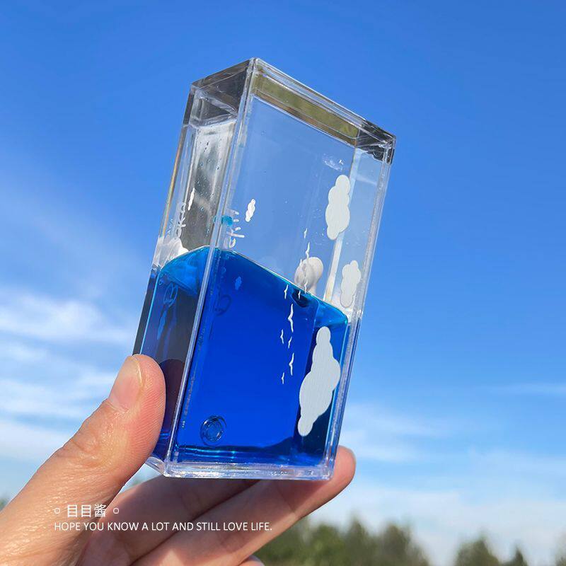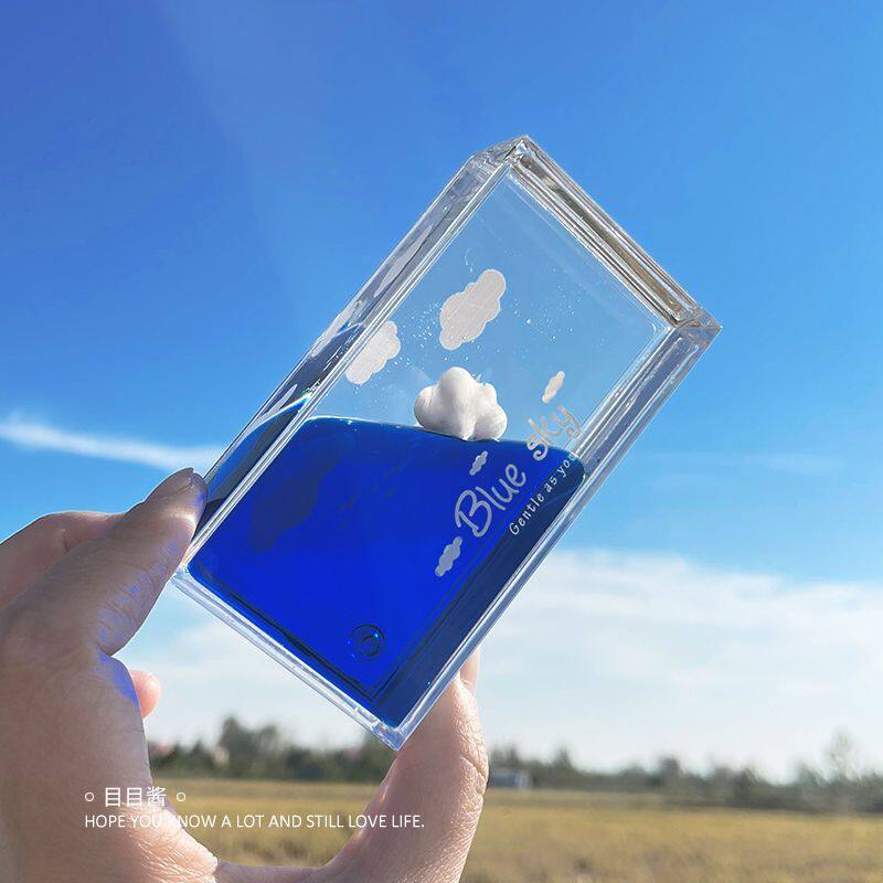 目目酱原创天空云朵蓝色室内摆件生日液体透明解压礼物桌面装饰品