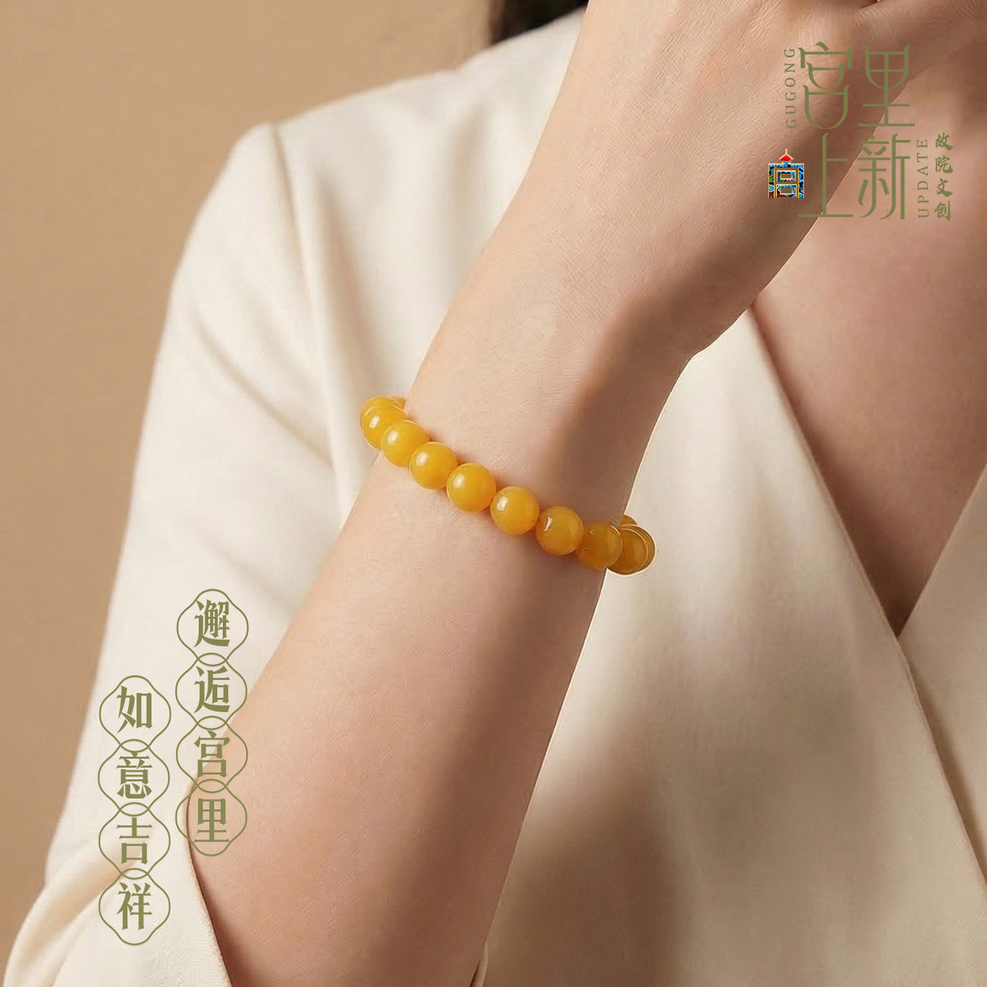 宫里上新黄玉手串女缅黄玉手链叠戴黄色玉石文玩生日母亲节礼物