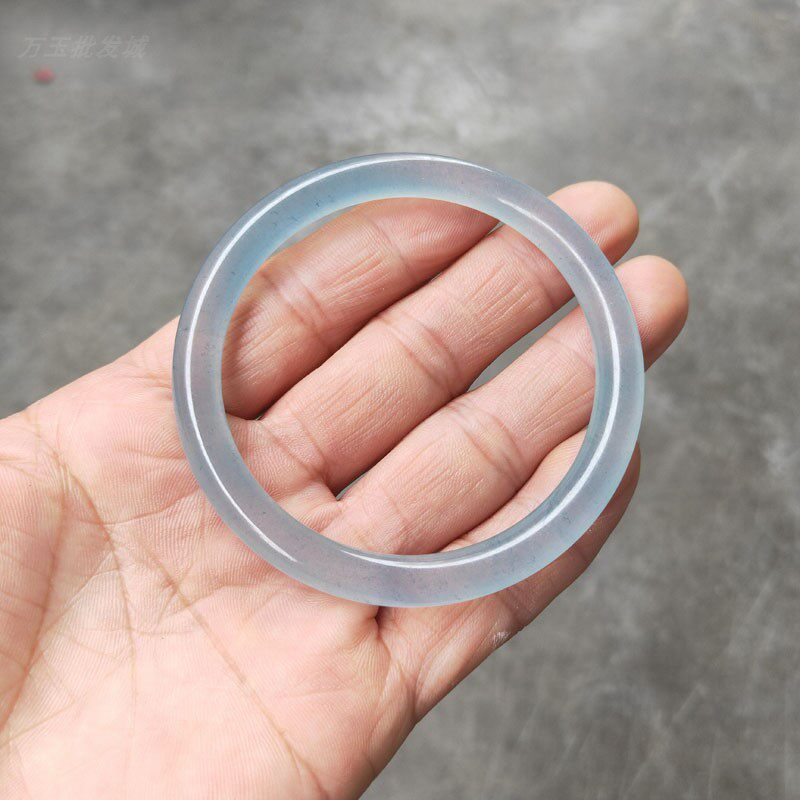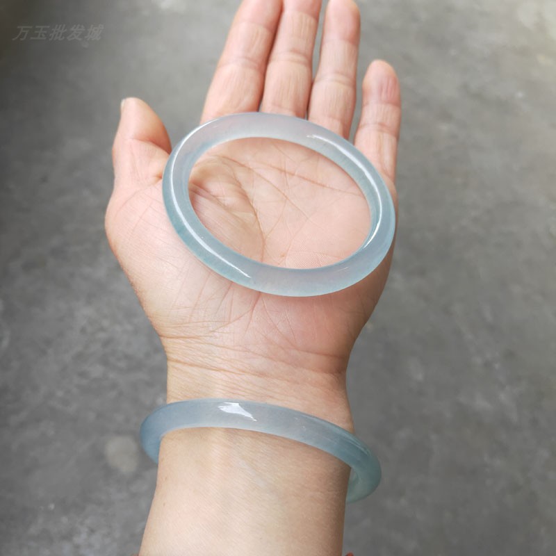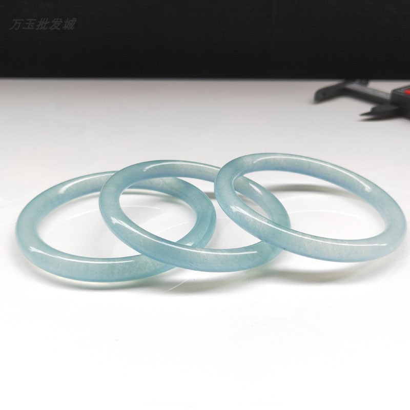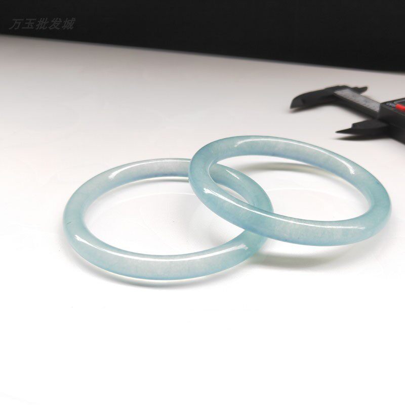 天然翡翠色玉手镯圆条冰种淡蓝色手镯细条玉手镯少女叮当镯美人镯