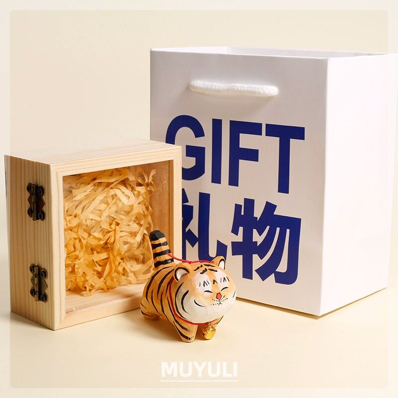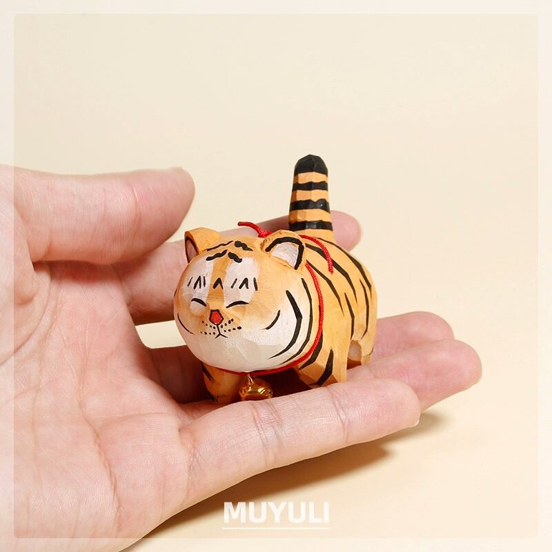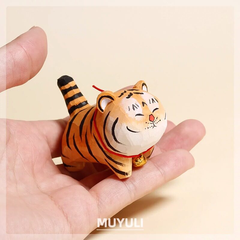 老虎木雕摆件手工电脑桌面摆件治愈系生日礼物38节可爱送妈妈