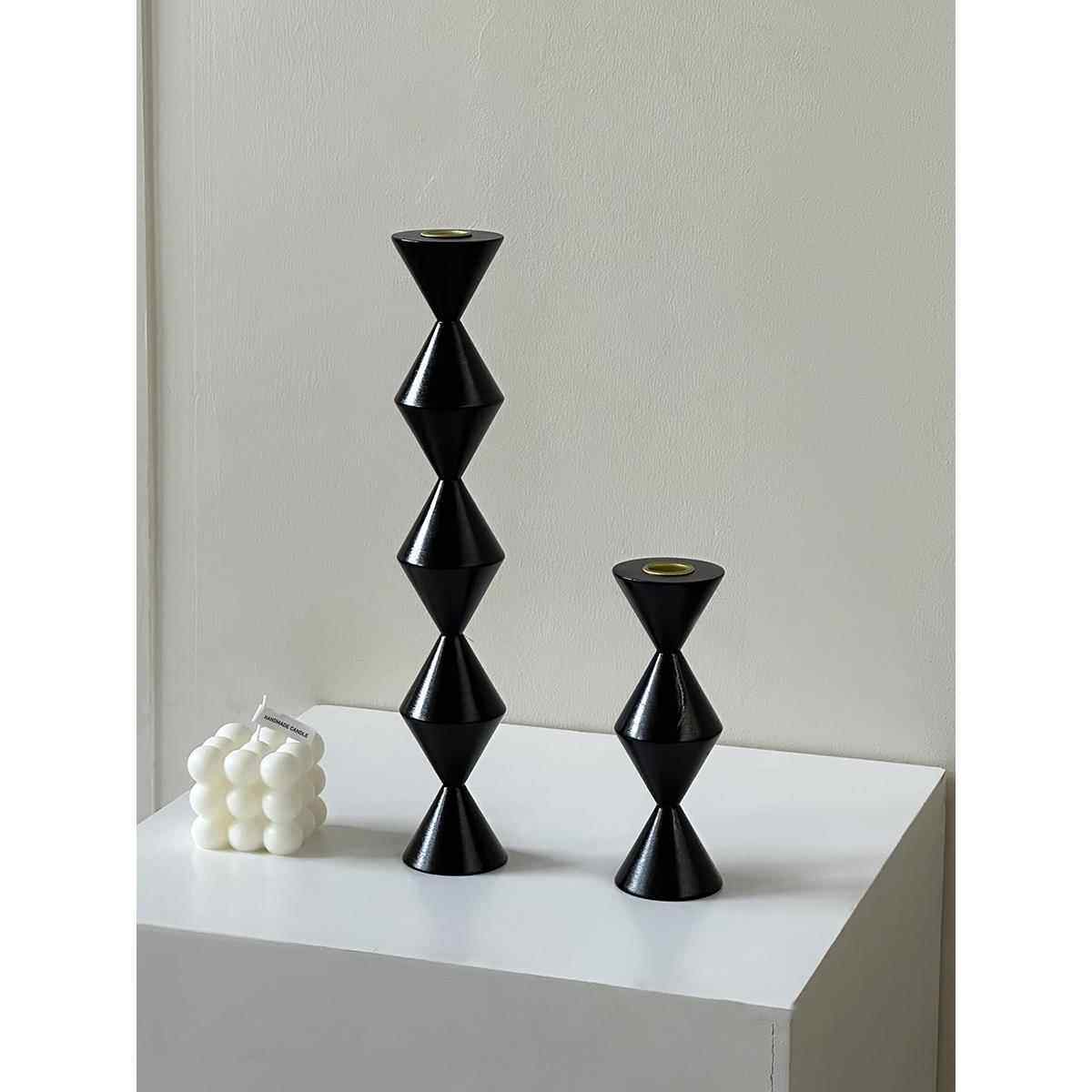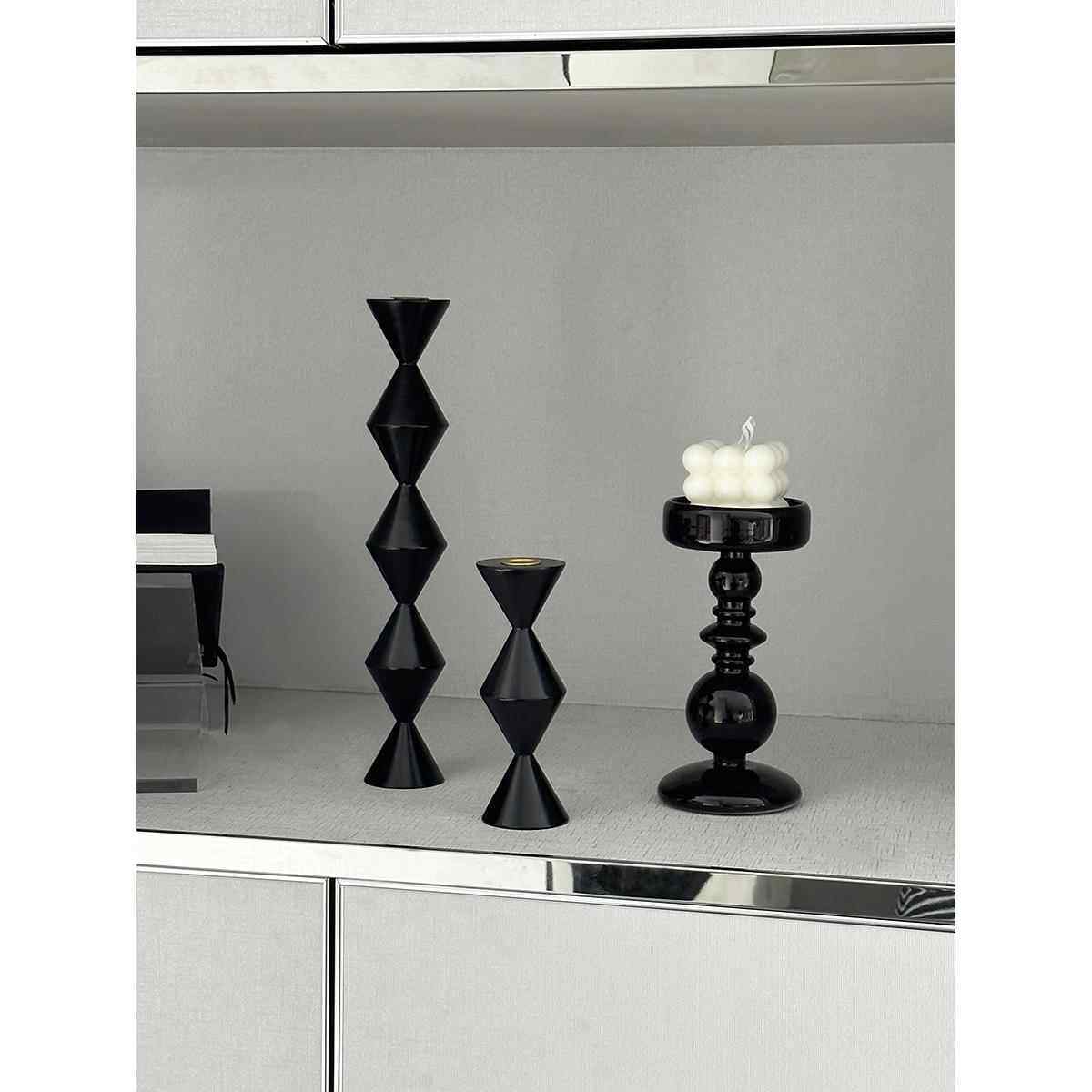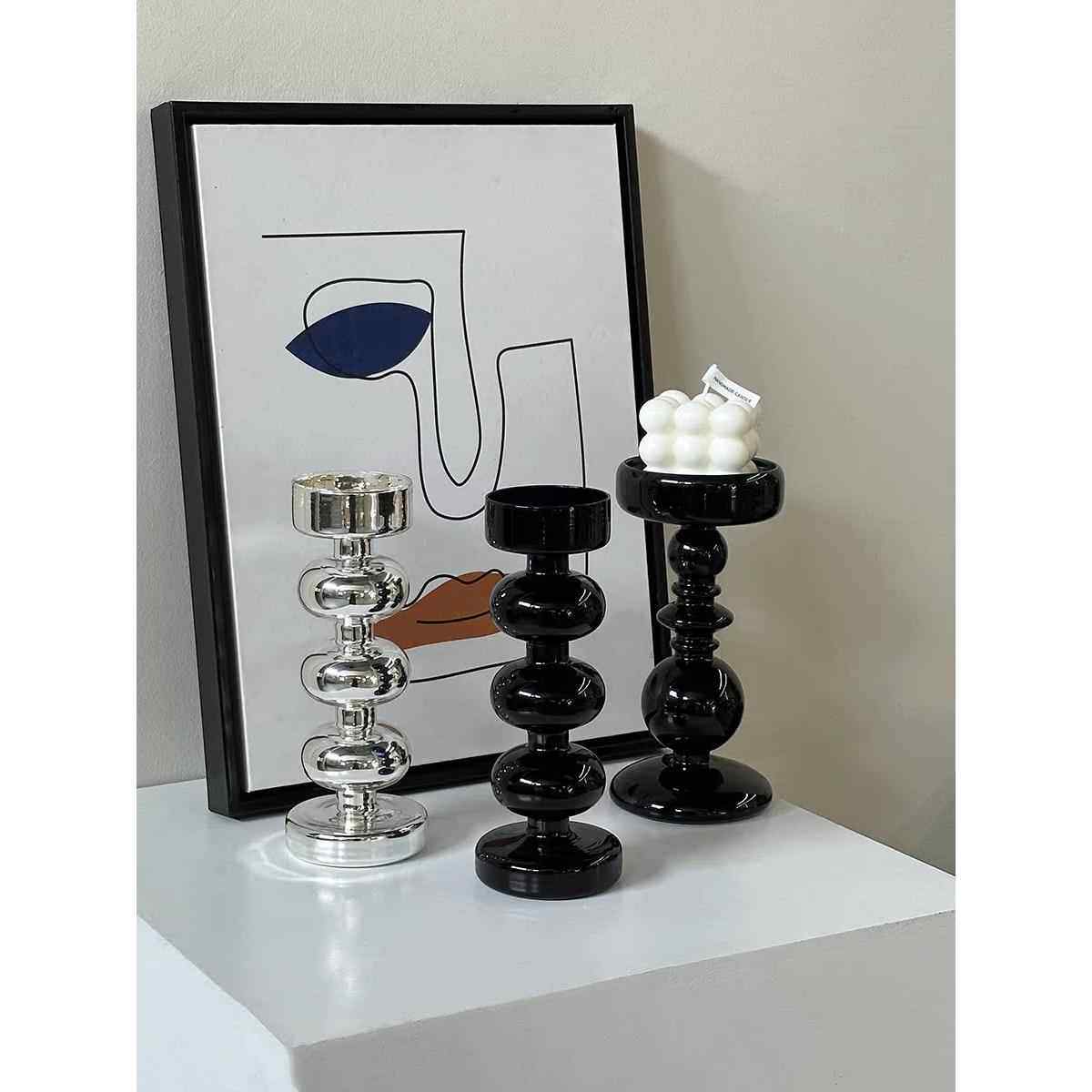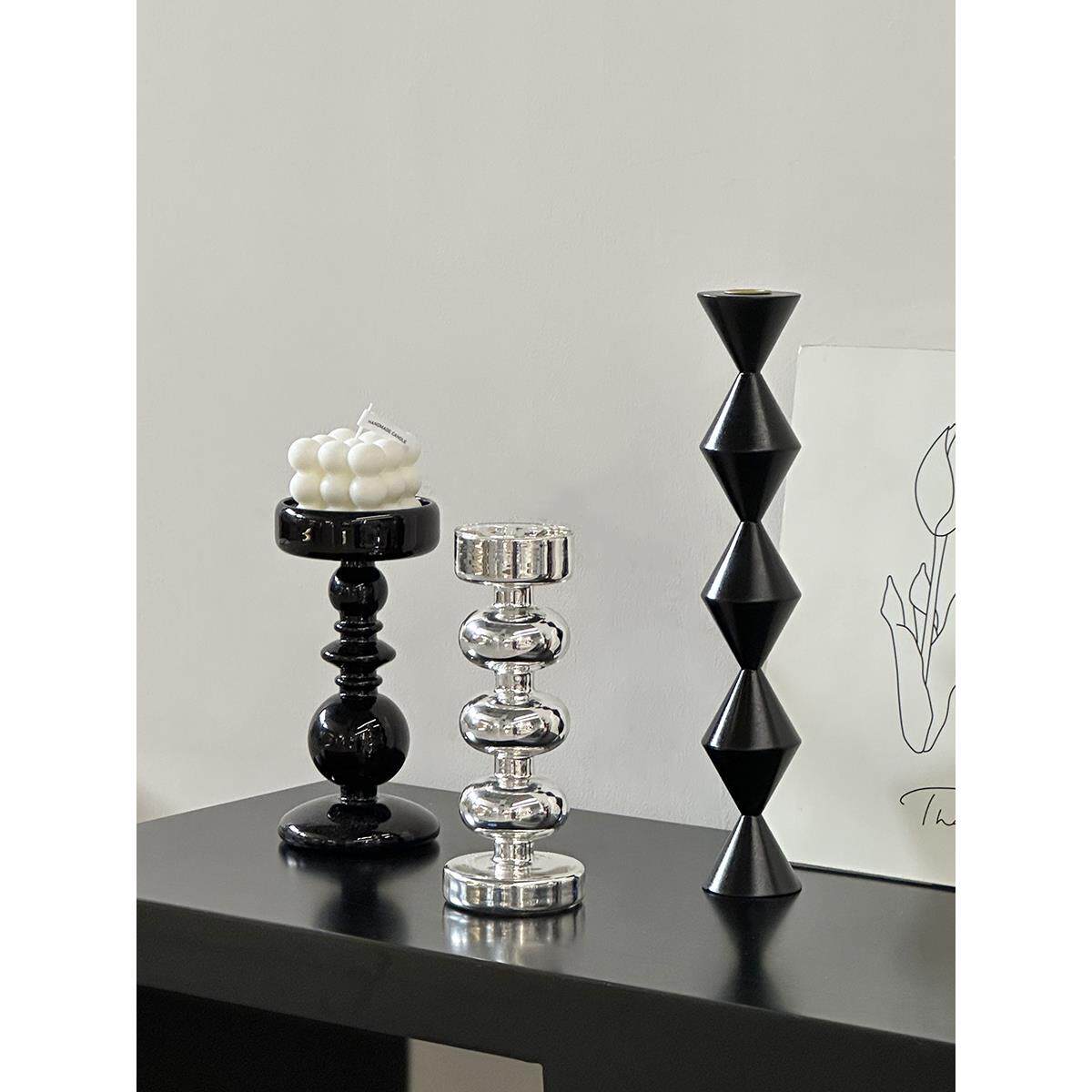 ins法式玻璃烛台北欧新年轻奢简约居家黑色银色实木复古装饰摆件