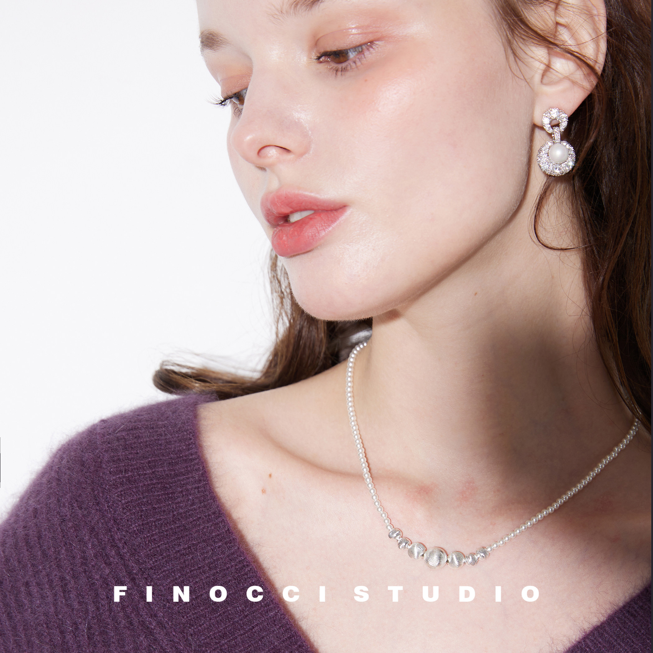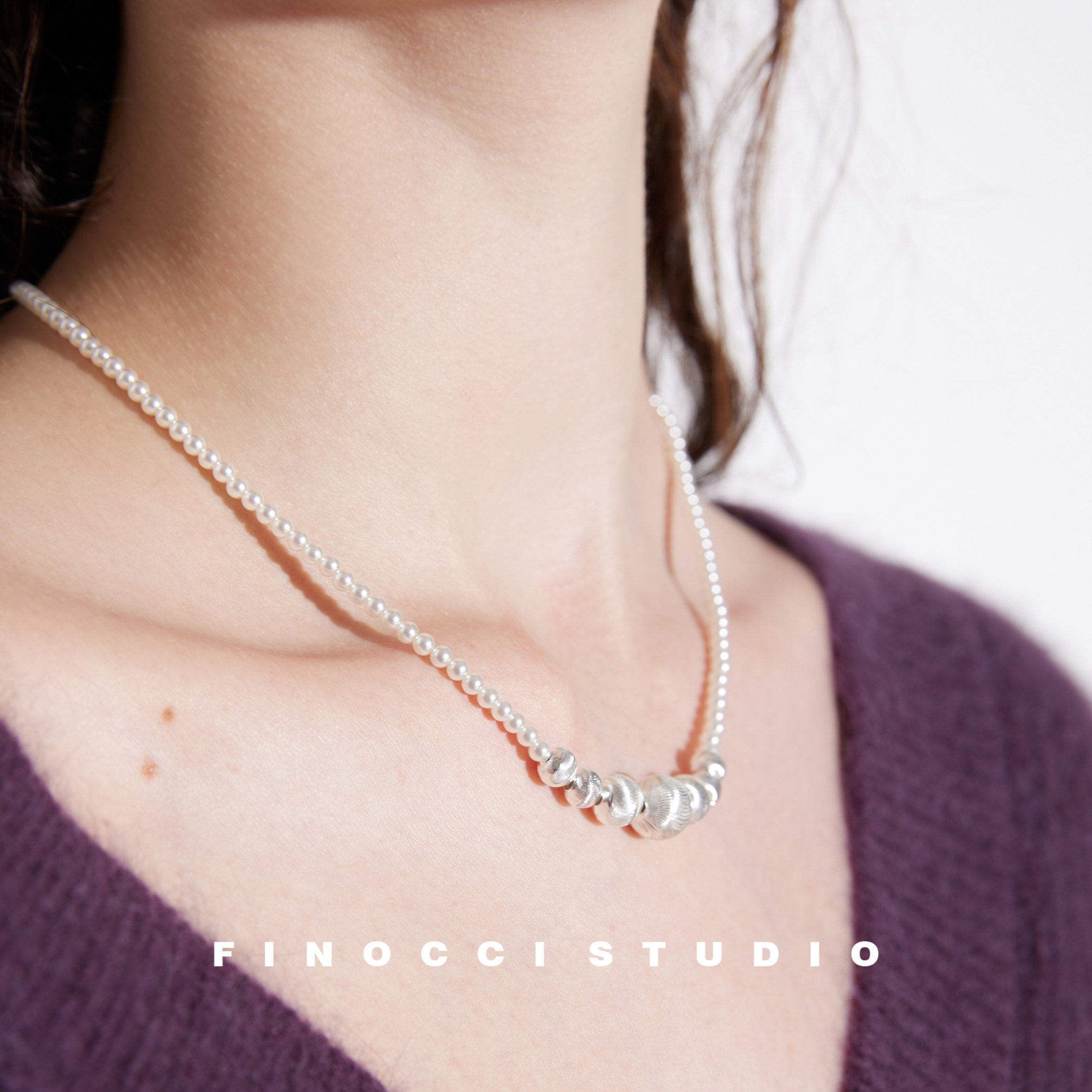 FINOCCI灰白拉丝猫眼银球高级莹润深海贝珠镀白金冷淡风迷人项链