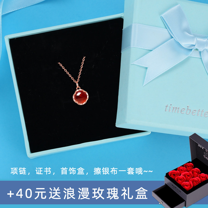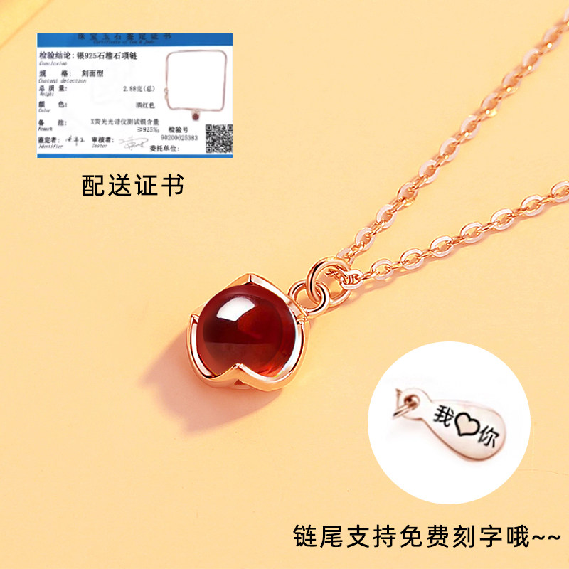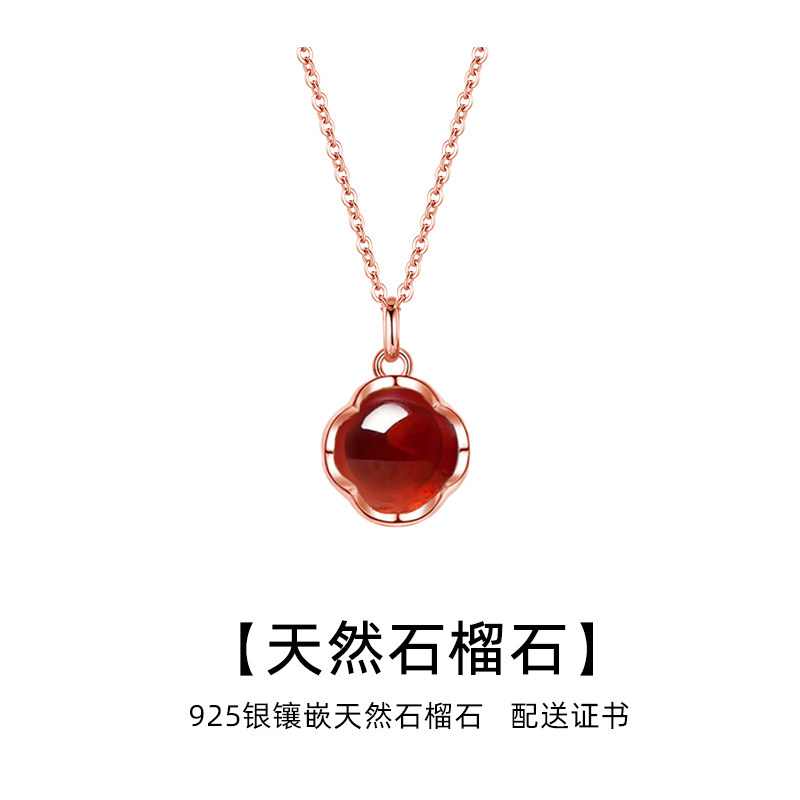 天然石榴石项链女银四叶草锁骨链本命年红色轻奢送证书生日礼物