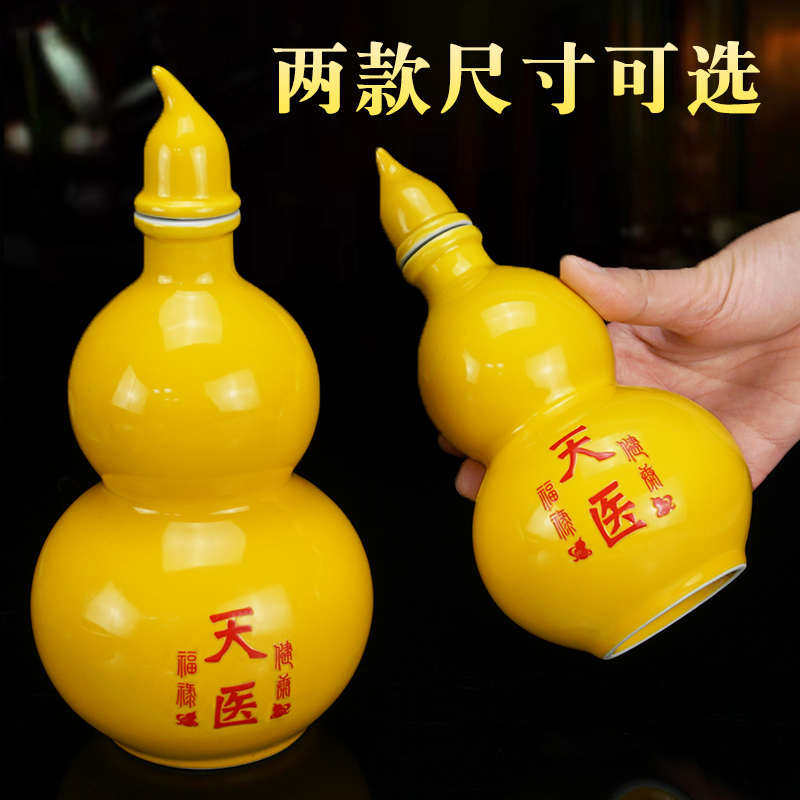 天医葫芦摆件黄色陶瓷开口葫芦家居客厅卧室床头福禄吉祥装饰品