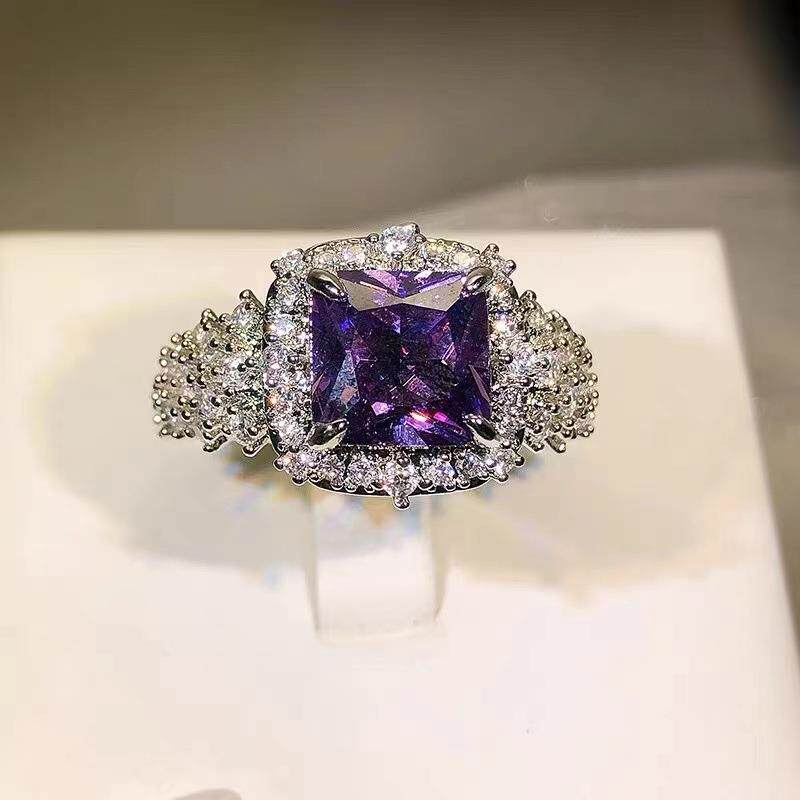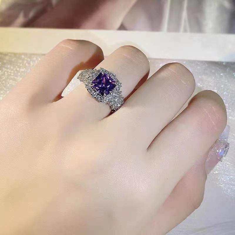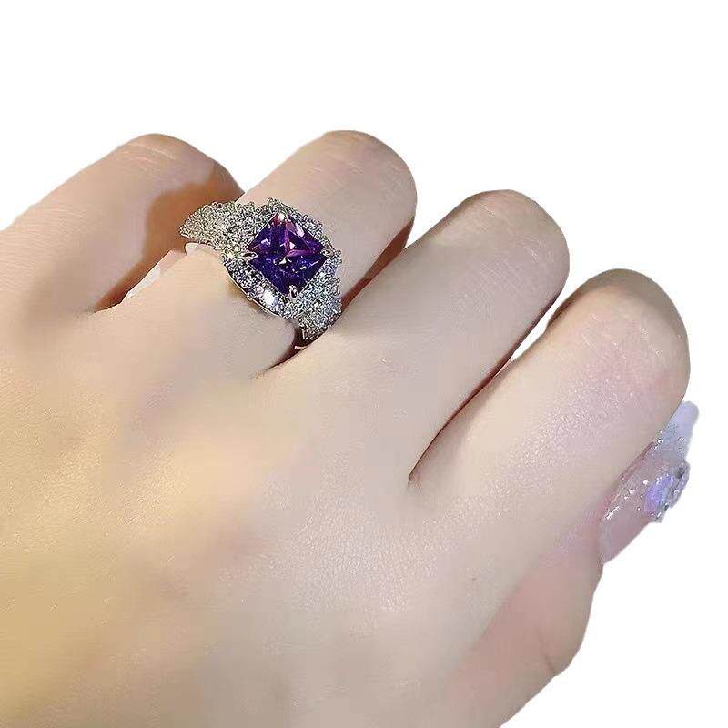 欧美小众设计感浪漫紫色宝石戒指女超闪奢华镶嵌璀璨满钻百搭指环