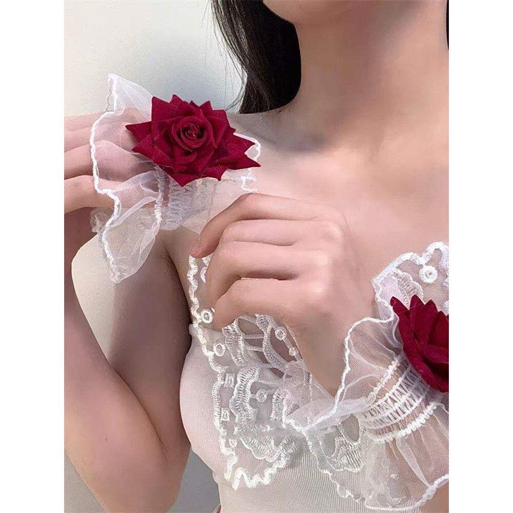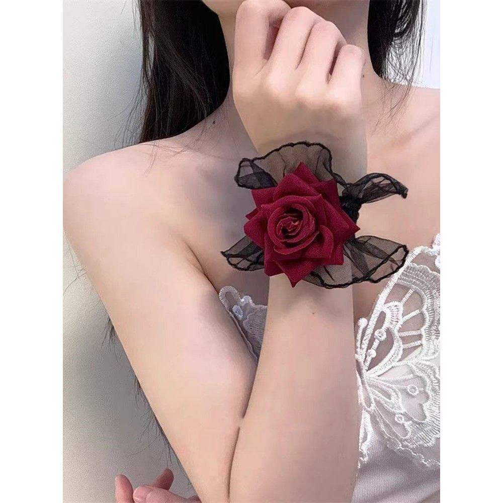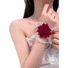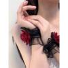 洛丽塔手腕花暗黑系玫瑰花红色手袖蕾丝花朵荷叶边手环女礼服袖套