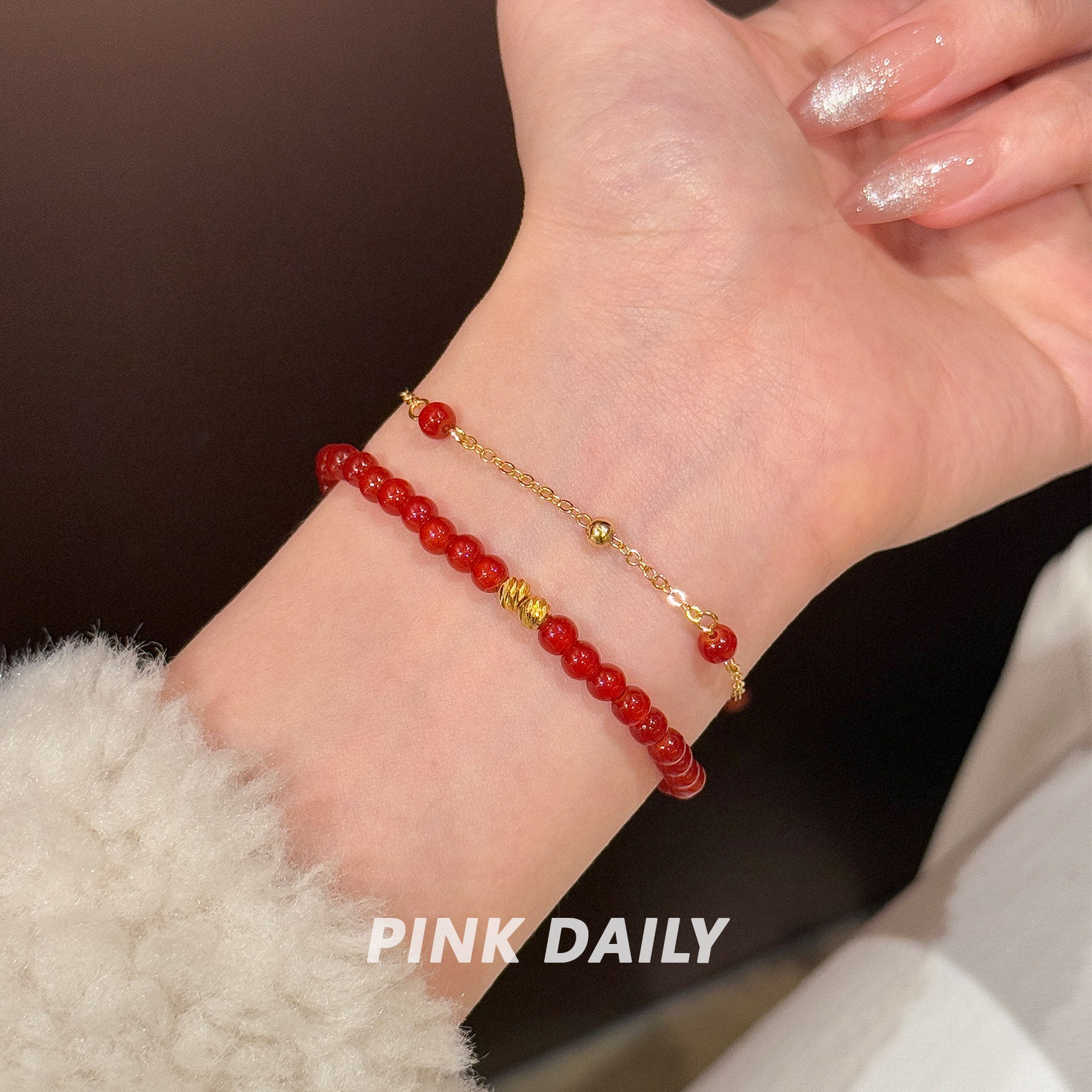 【特价款】红色玛瑙串珠叠戴手串女闺蜜轻奢小众精致高级感细手链